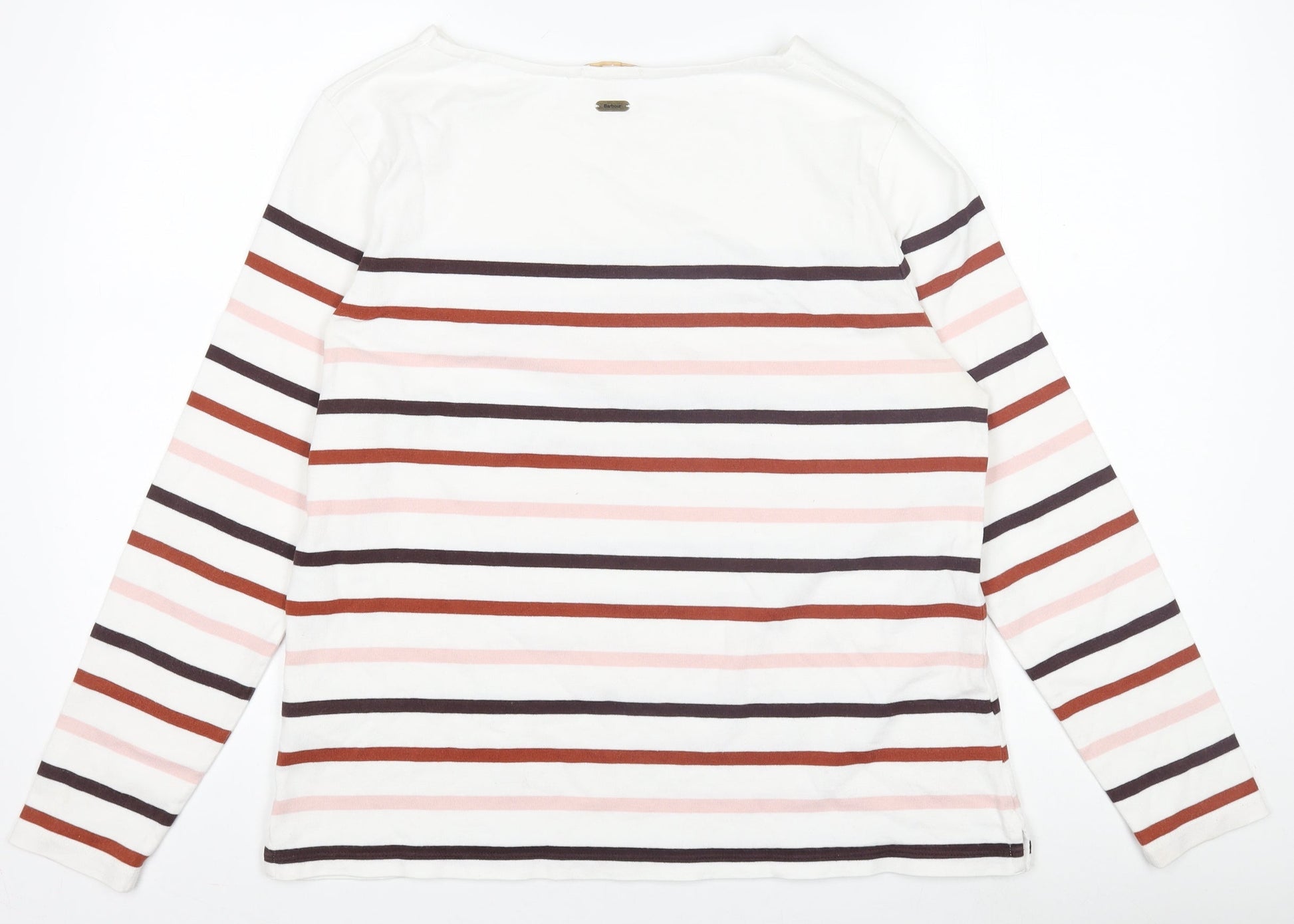 Barbour Women's White Striped Long Sleeve Hawkins Cotton Top UK 14