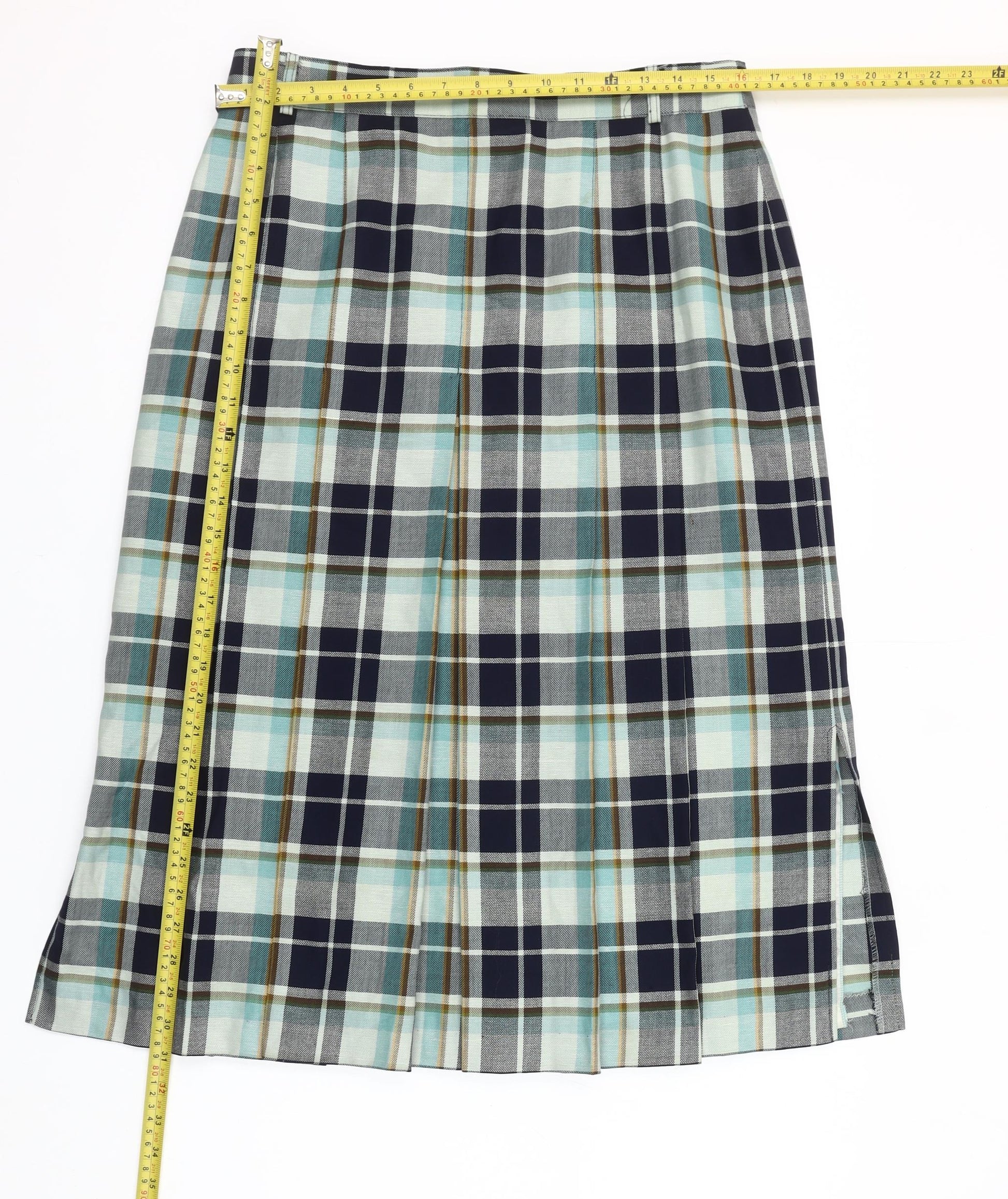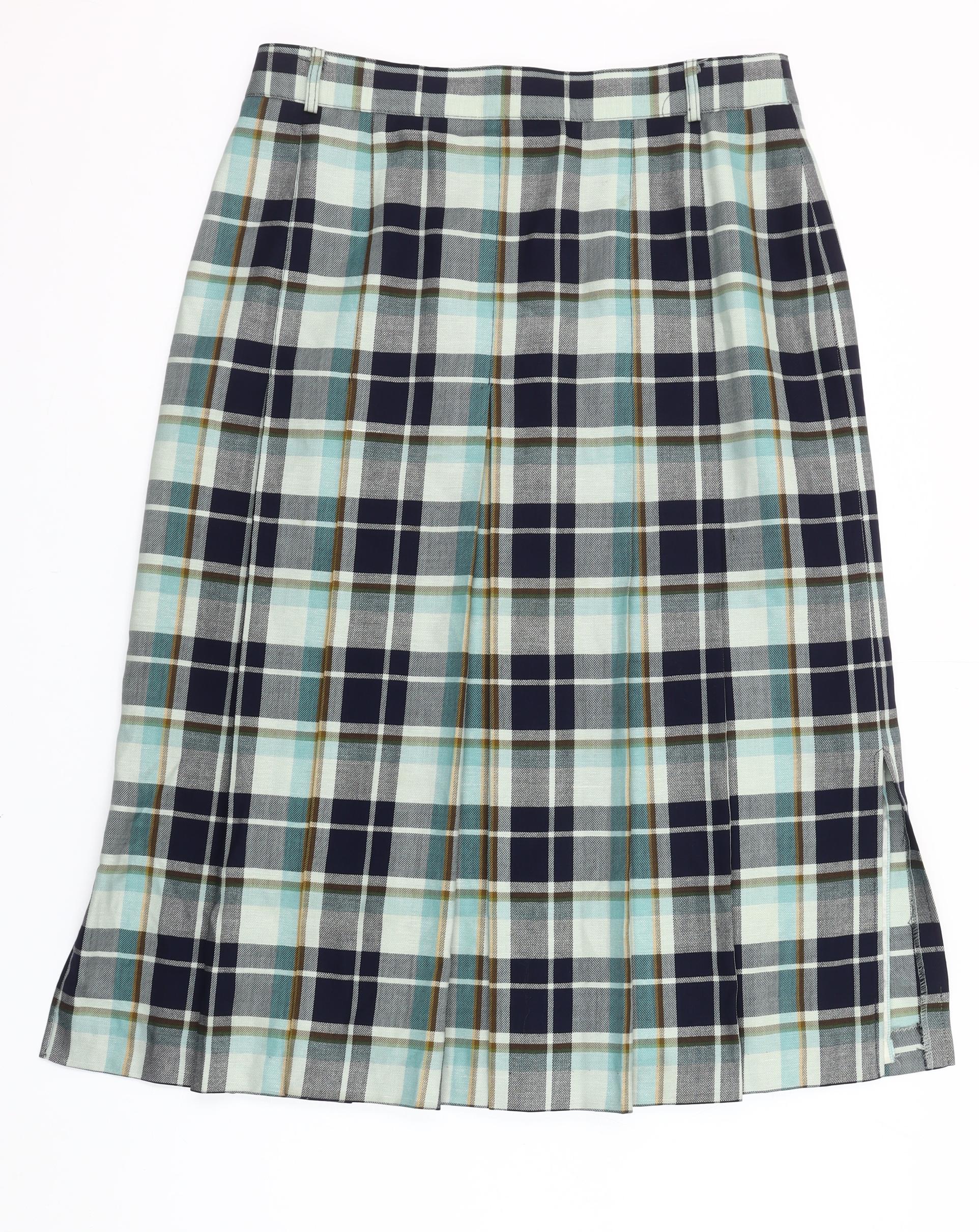 Basler Women Blue Plaid Pleated Knee Length Skirt Size 16