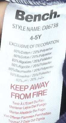 Bench Boys Blue Jogger Trousers 5 Years Cotton Blend Elastic Waist