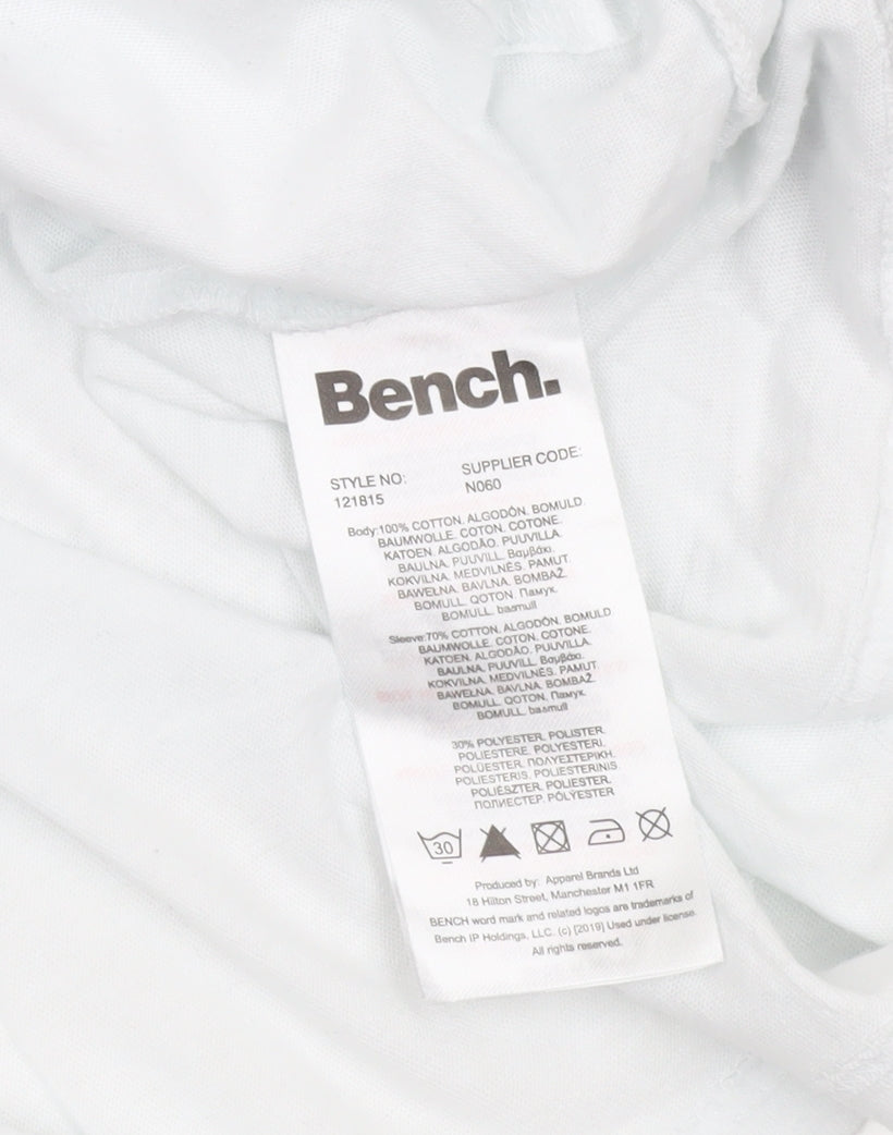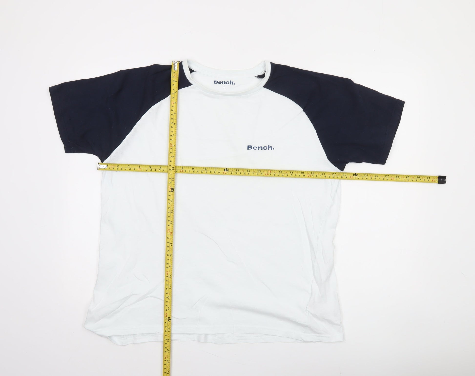 Bench Men’s White and Navy Raglan Crew Neck Cotton T-Shirt Size L