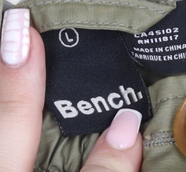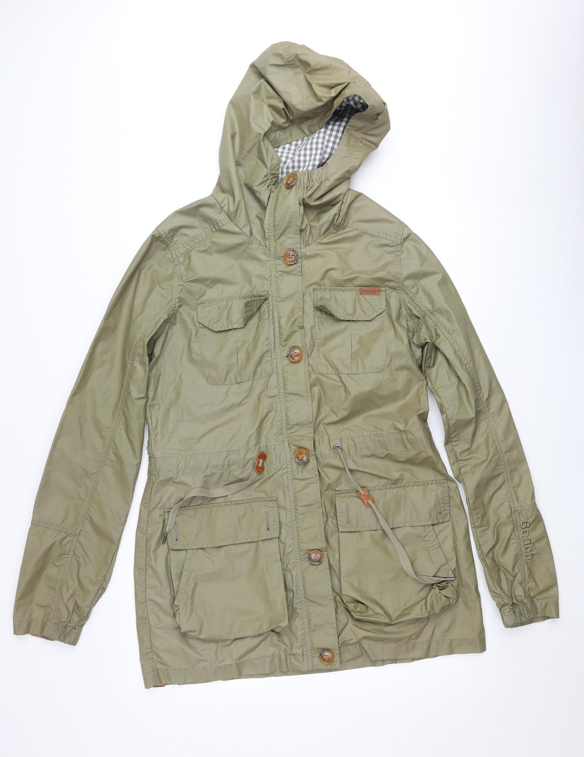 Bench Women's Green Hooded Parka Jacket L Lined Zip Button Pockets