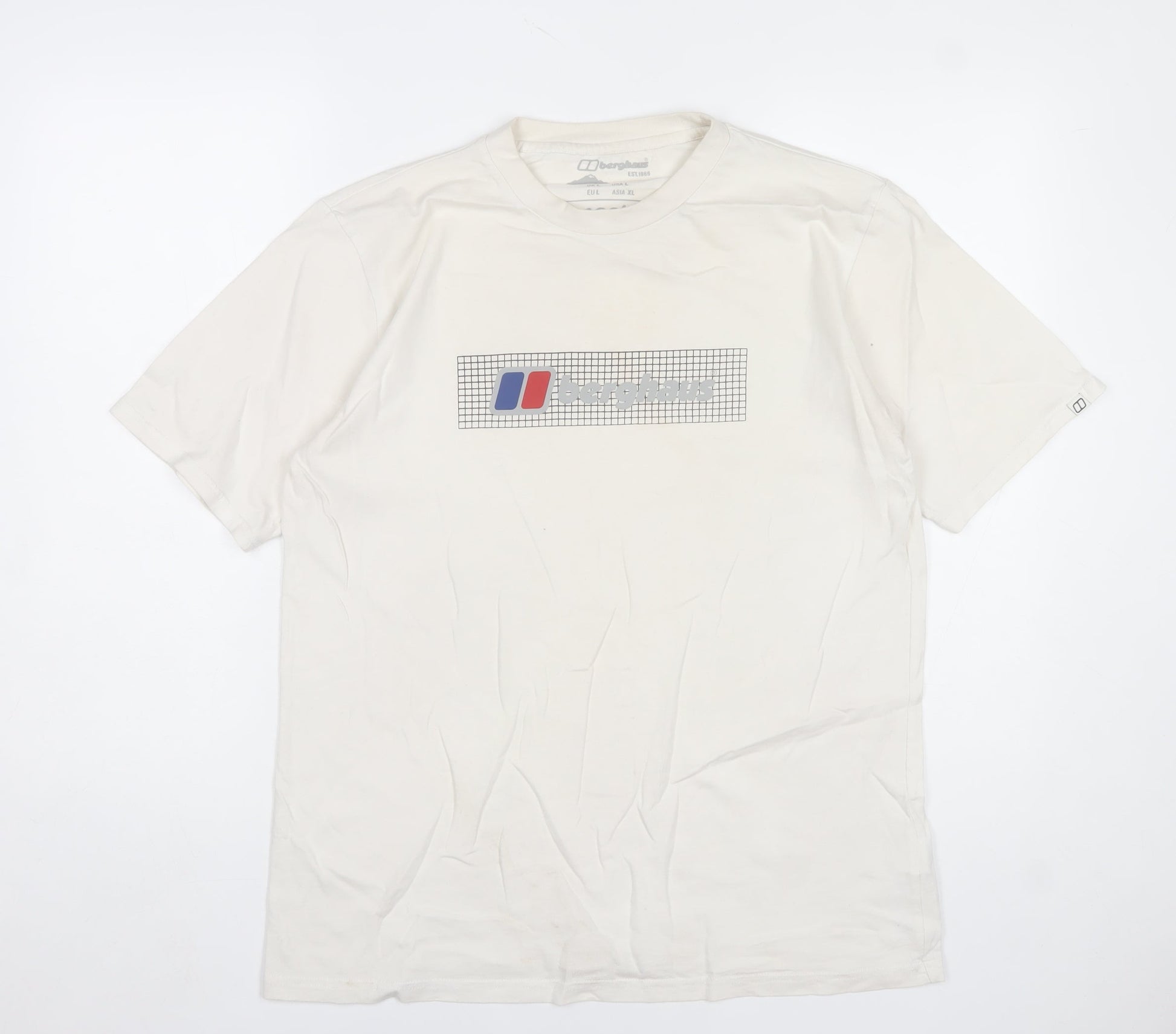 Berghaus Men's White Graphic Print Cotton Crew Neck T-Shirt Size L
