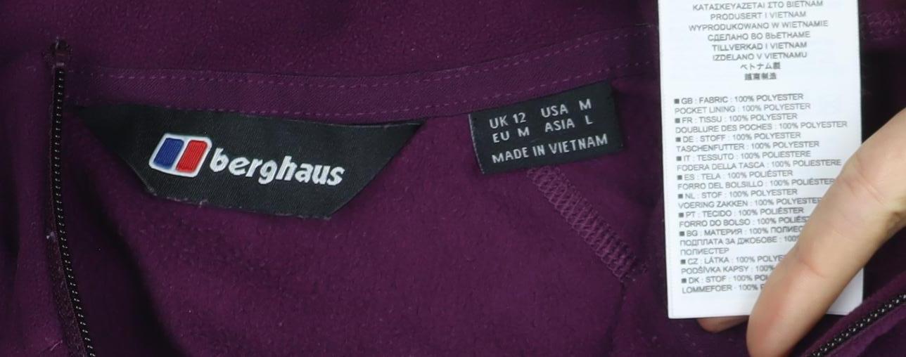 Berghaus Women’s Purple Fleece Jacket Size 12 Full Zip Outdoor