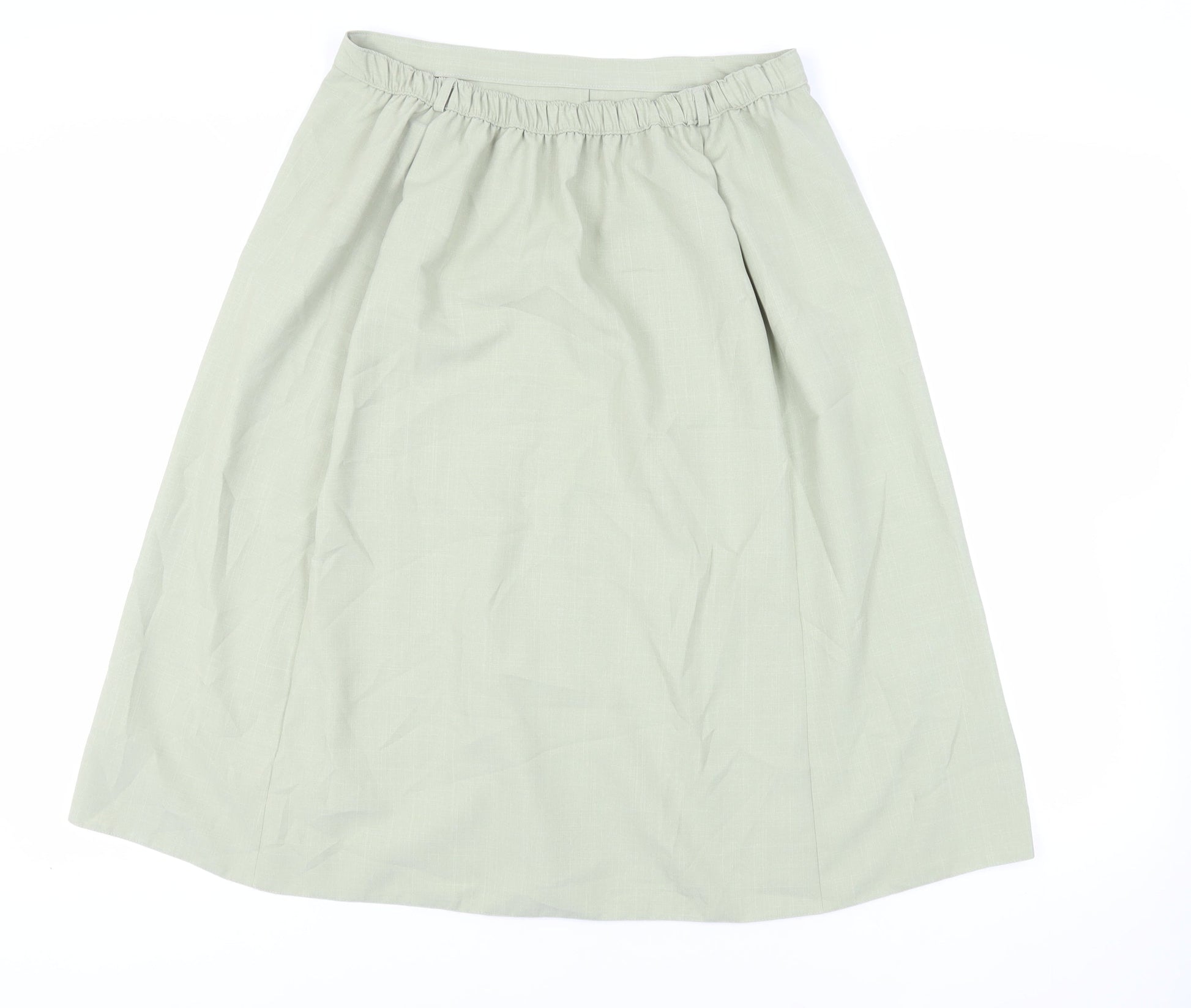 Berkertex Womens Green Polyester A-Line Skirt Size 16 Button - Elasticated Waist