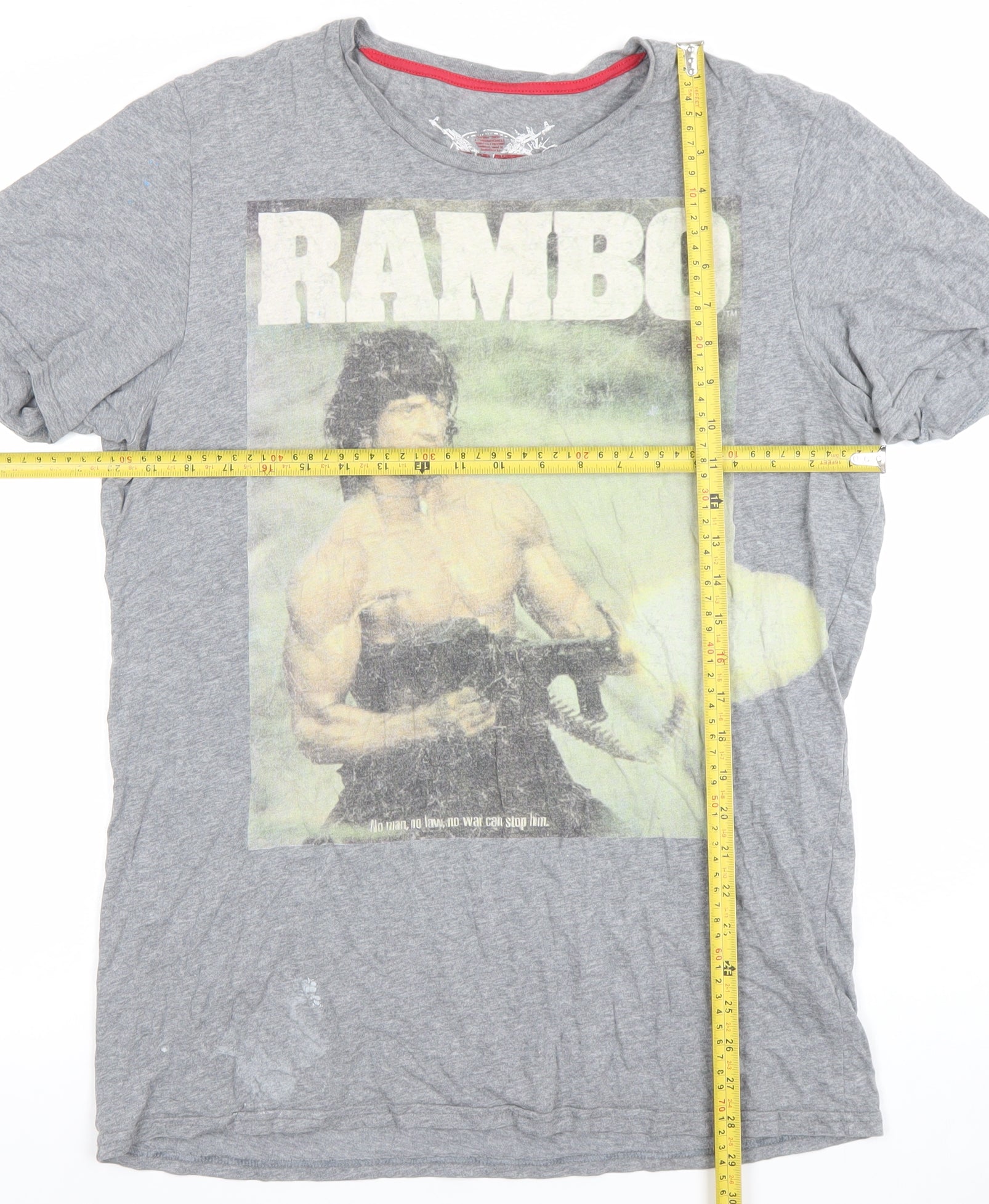 Bershka Men's Grey Rambo Graphic Print XL T-Shirt