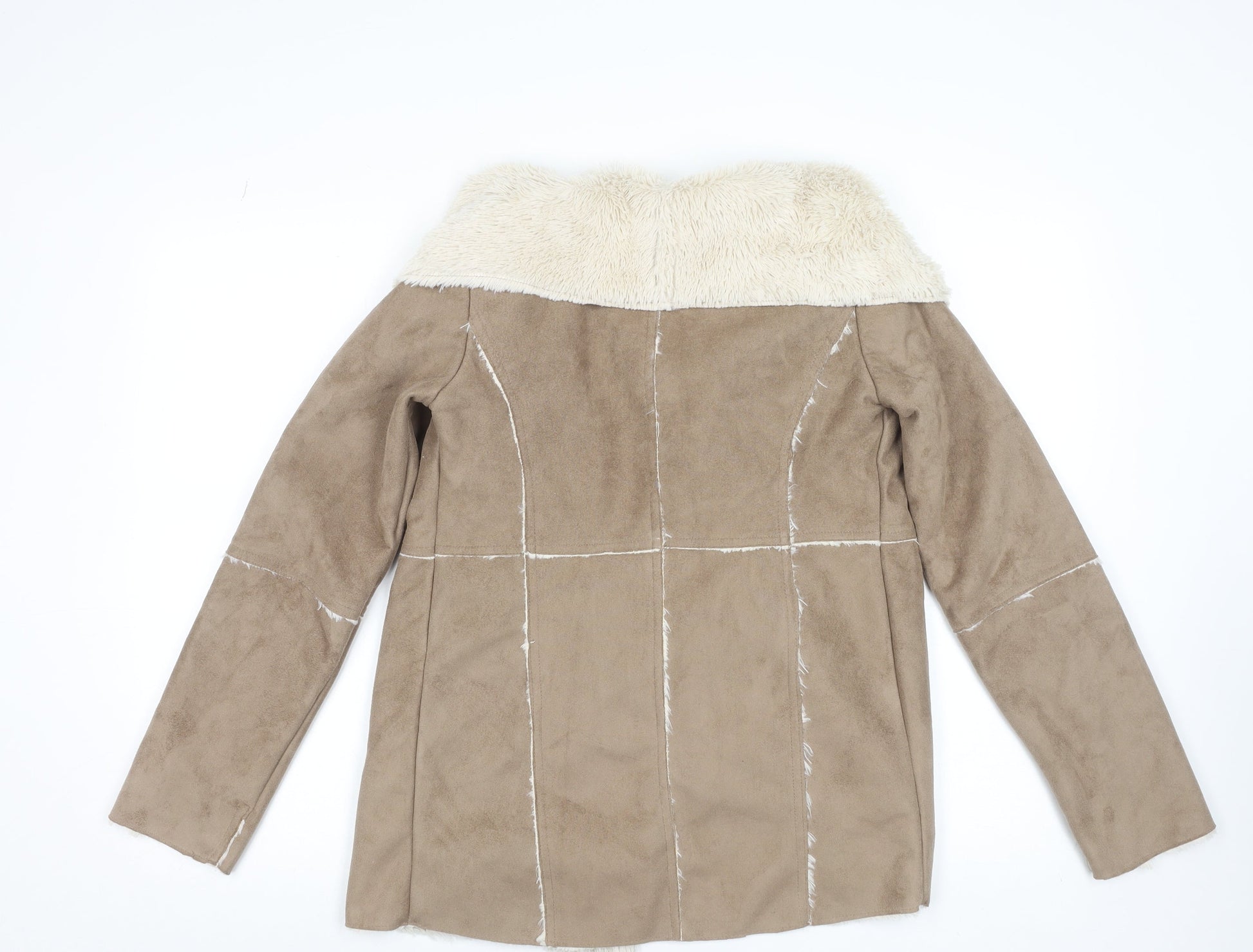 Bershka Women's Beige Faux Shearling Open Front Jacket Size S