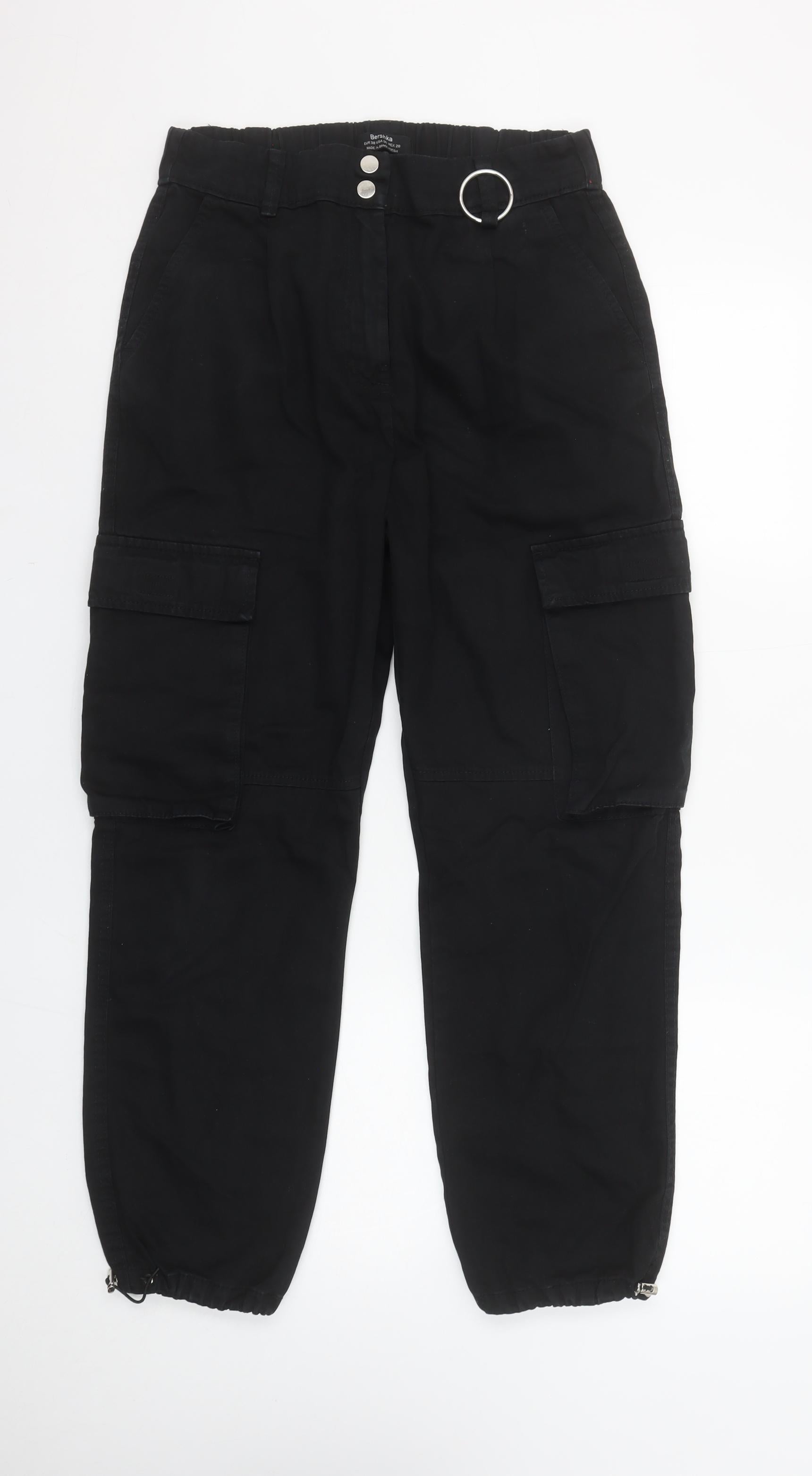 Bershka Womens Black Cargo Trousers Size 10 Relaxed Fit Utility Style