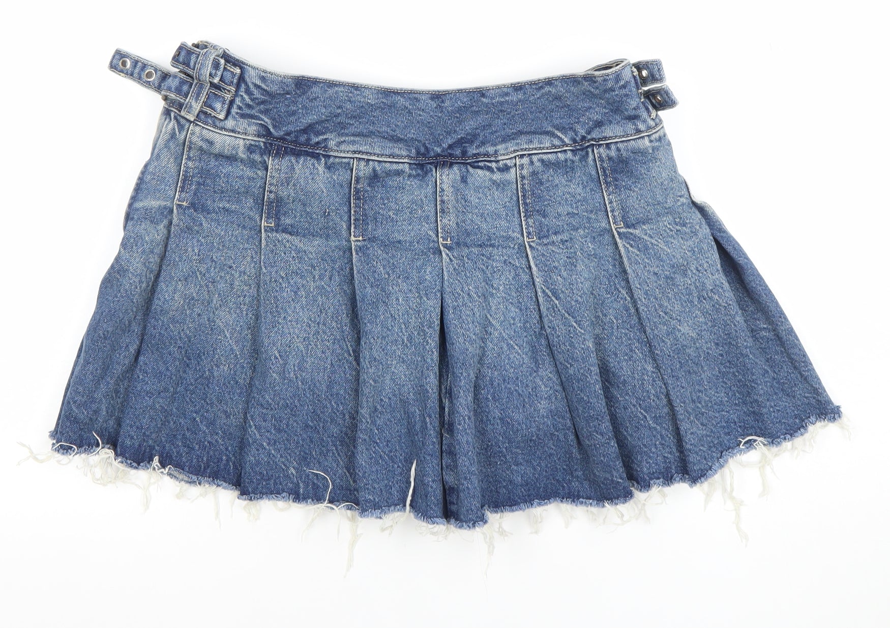 Bershka Women's Blue Denim Cut-Off Pleated Shorts Size 8