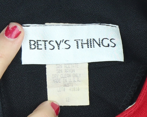 Betsy's Things Women’s Black Red Shift Dress Size 12 Retro Vintage