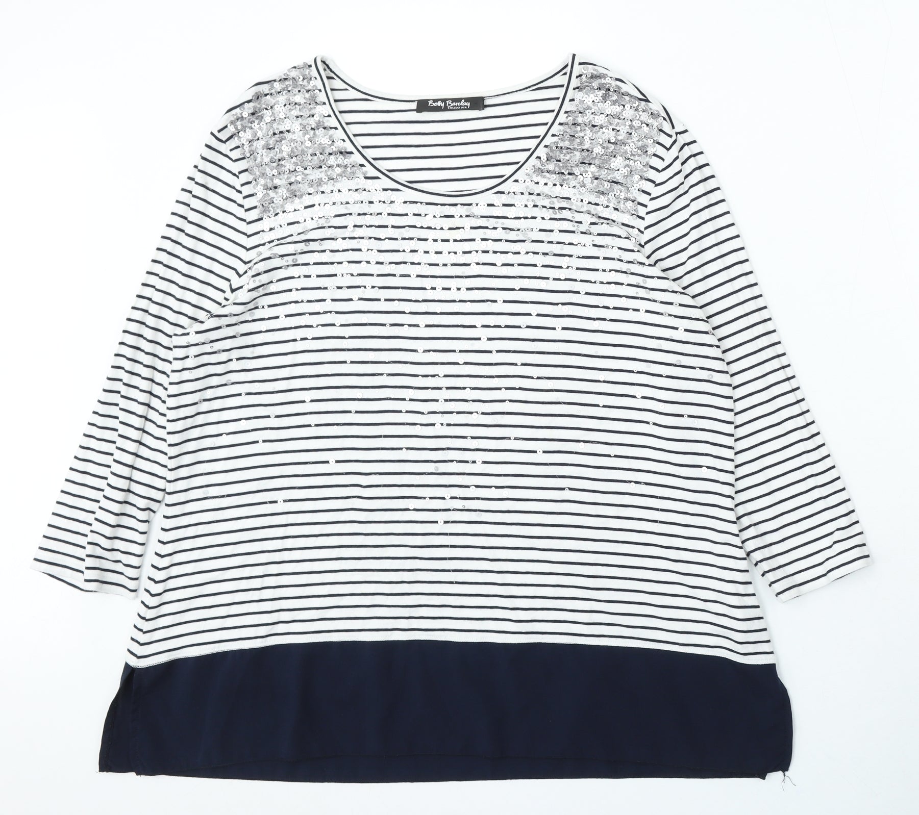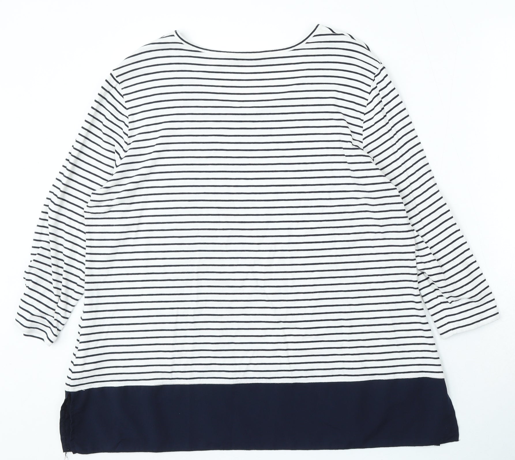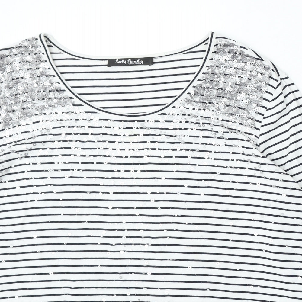 Betty Barclay Womens White Round Neck Striped Cotton Pullover Jumper Size M
