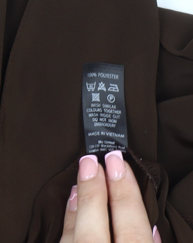 BHS Women's Brown Button-Up Shirt Size 14 with Embroidery