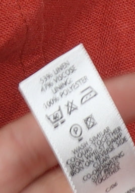 BHS Women's Red Linen Pencil Skirt Size 16 with Button Accent