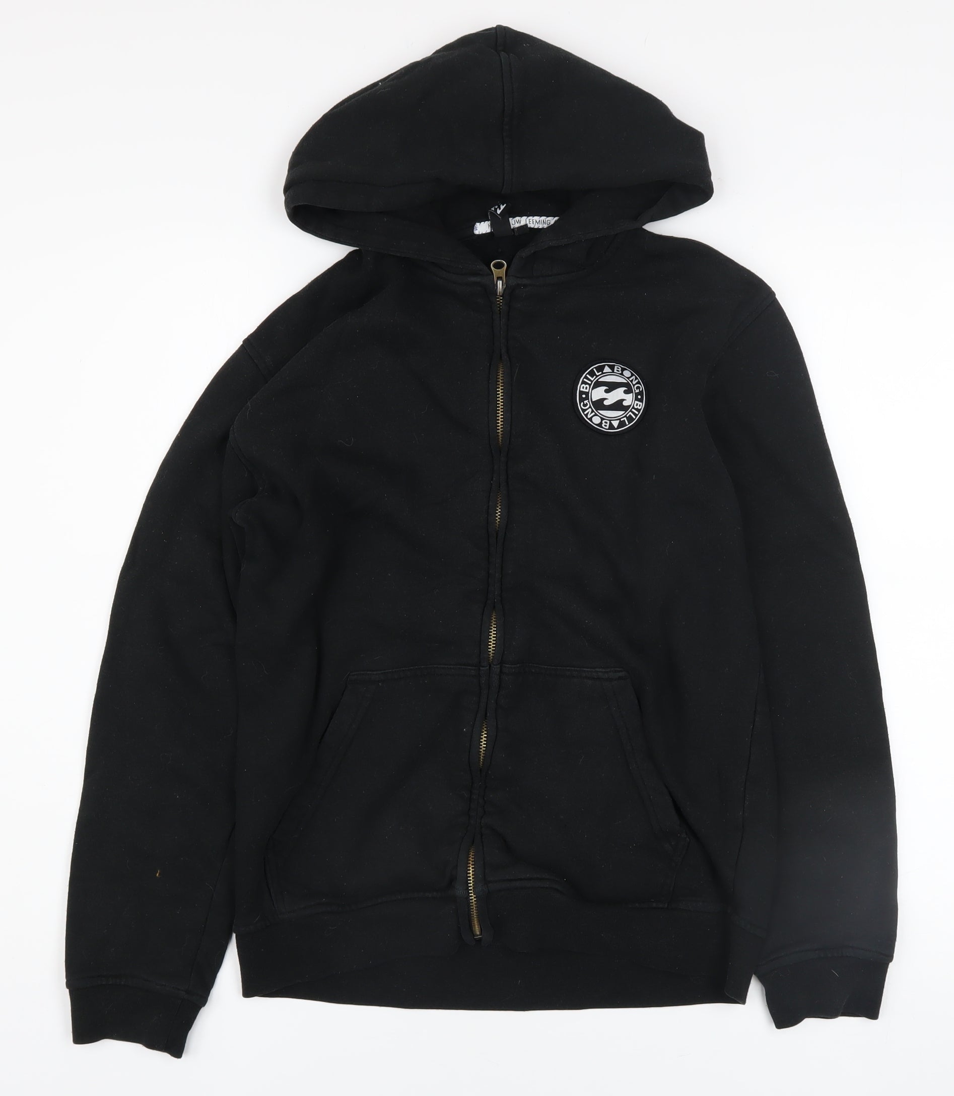 Billabong Boys Black Full Zip Hoodie Size 14 Logo Fleece Sweatshirt