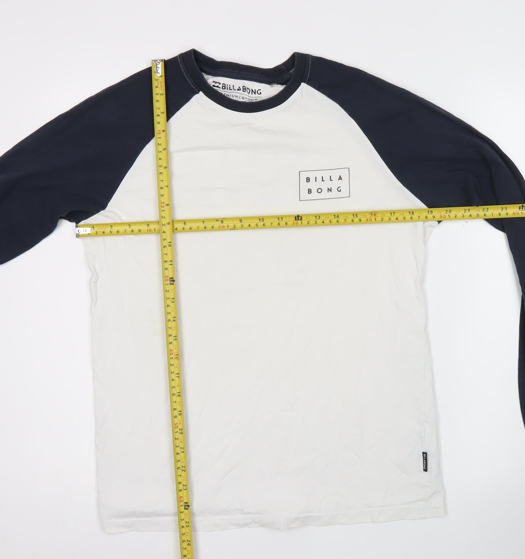 Billabong Men’s White & Black Long Sleeve Cotton T-Shirt Size S