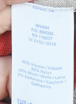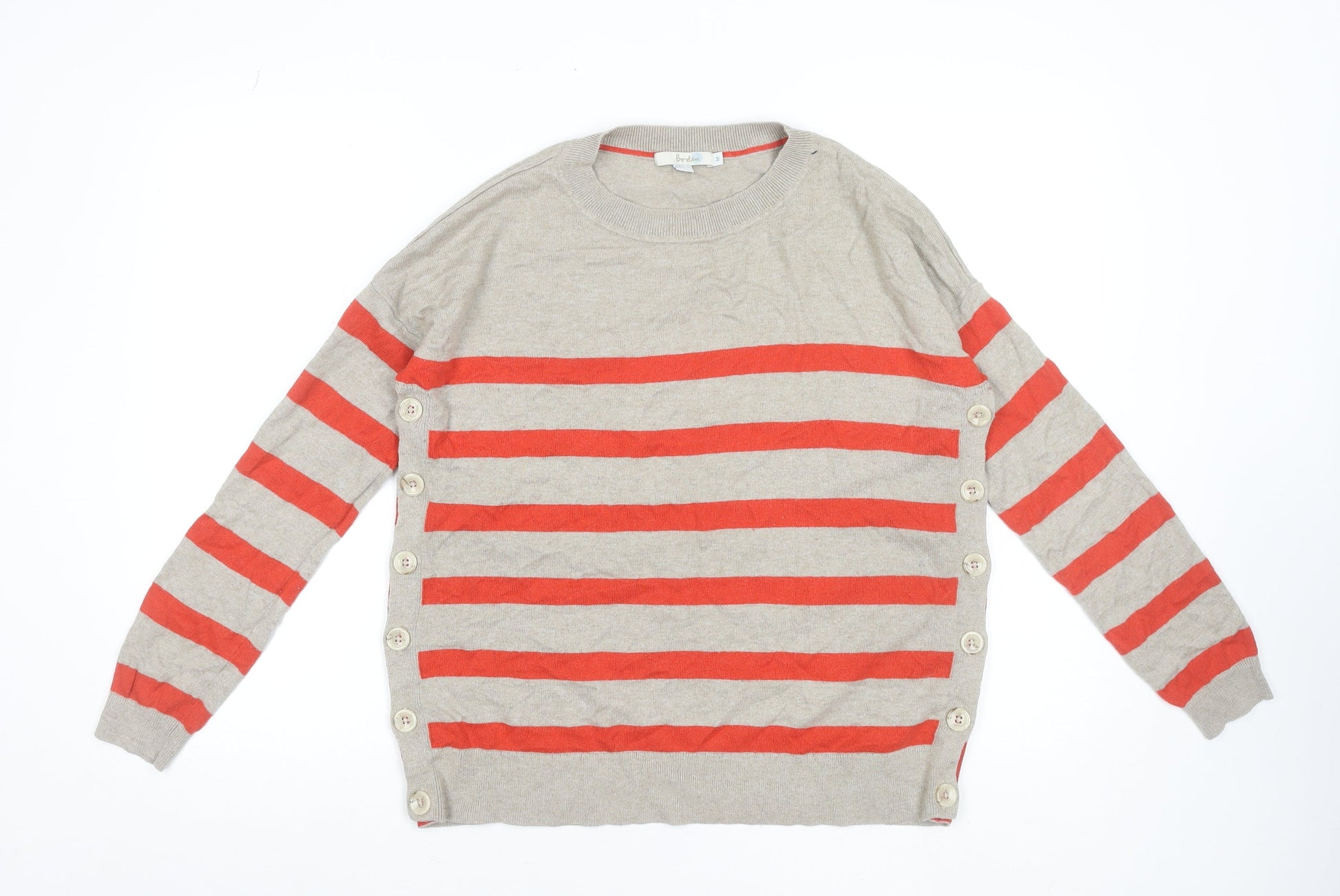 Boden Women Beige Red Striped Wool Blend Button Pullover Jumper M