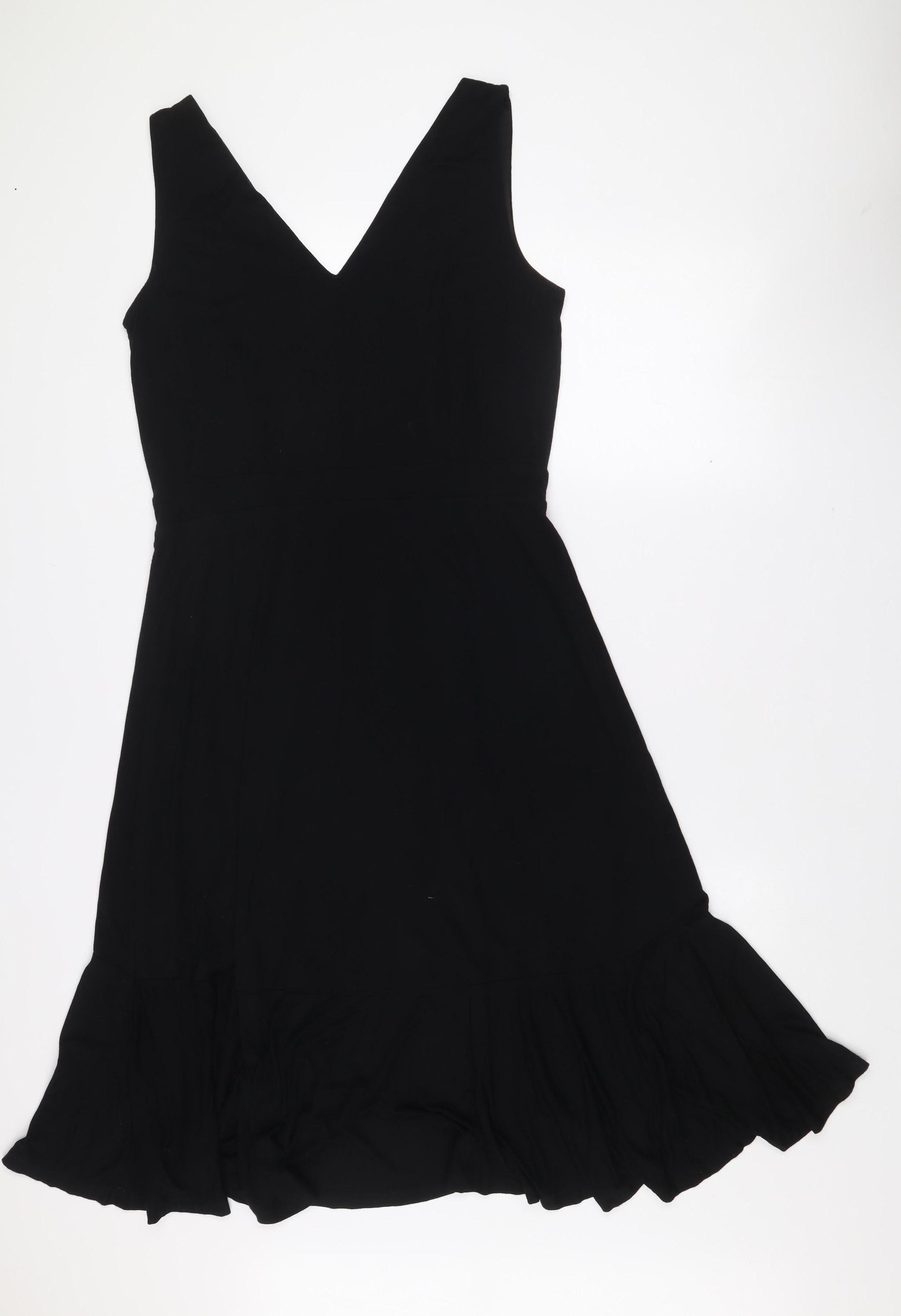 Boden Women Black Fit & Flare V-Neck Sleeveless Ruffle Dress UK 14