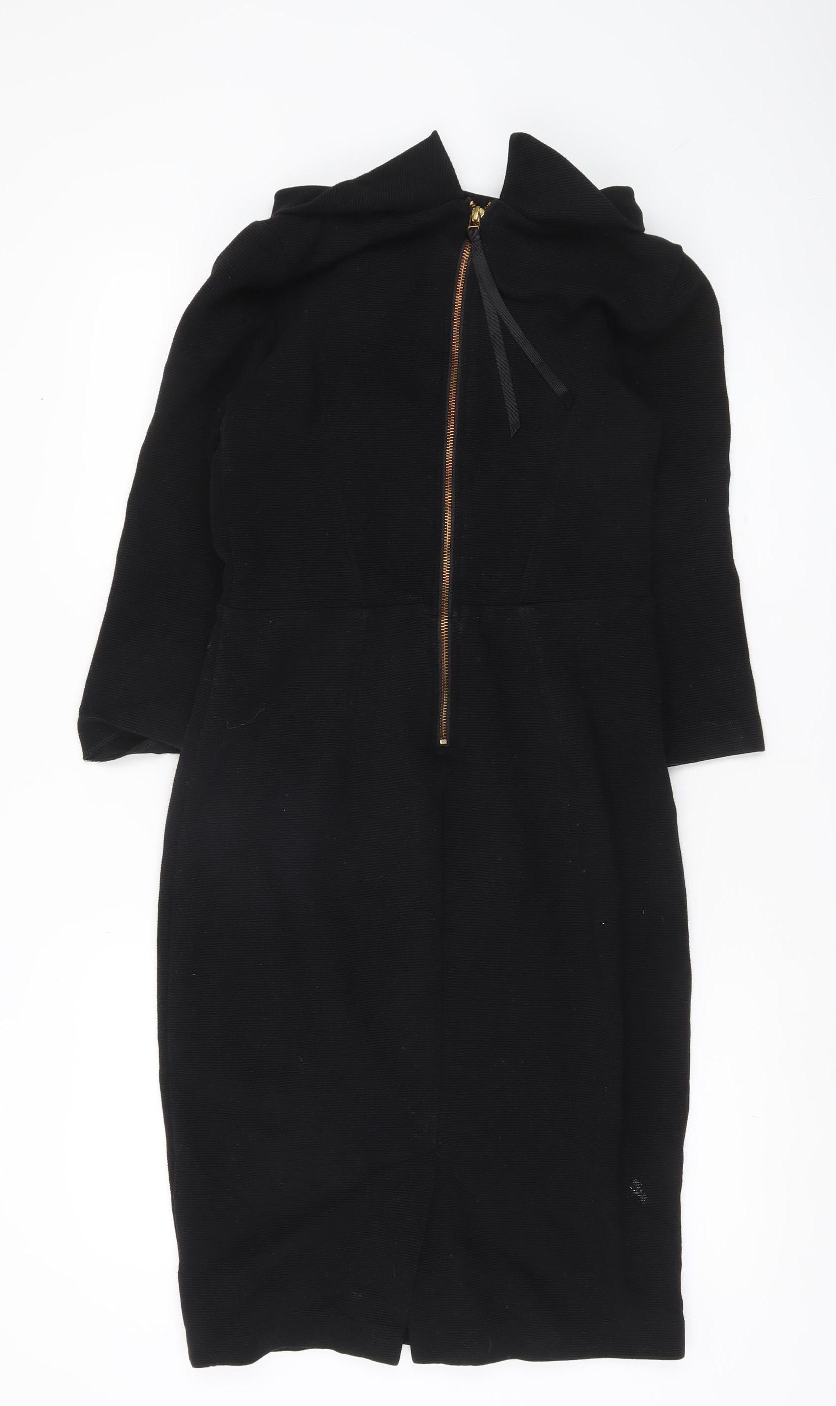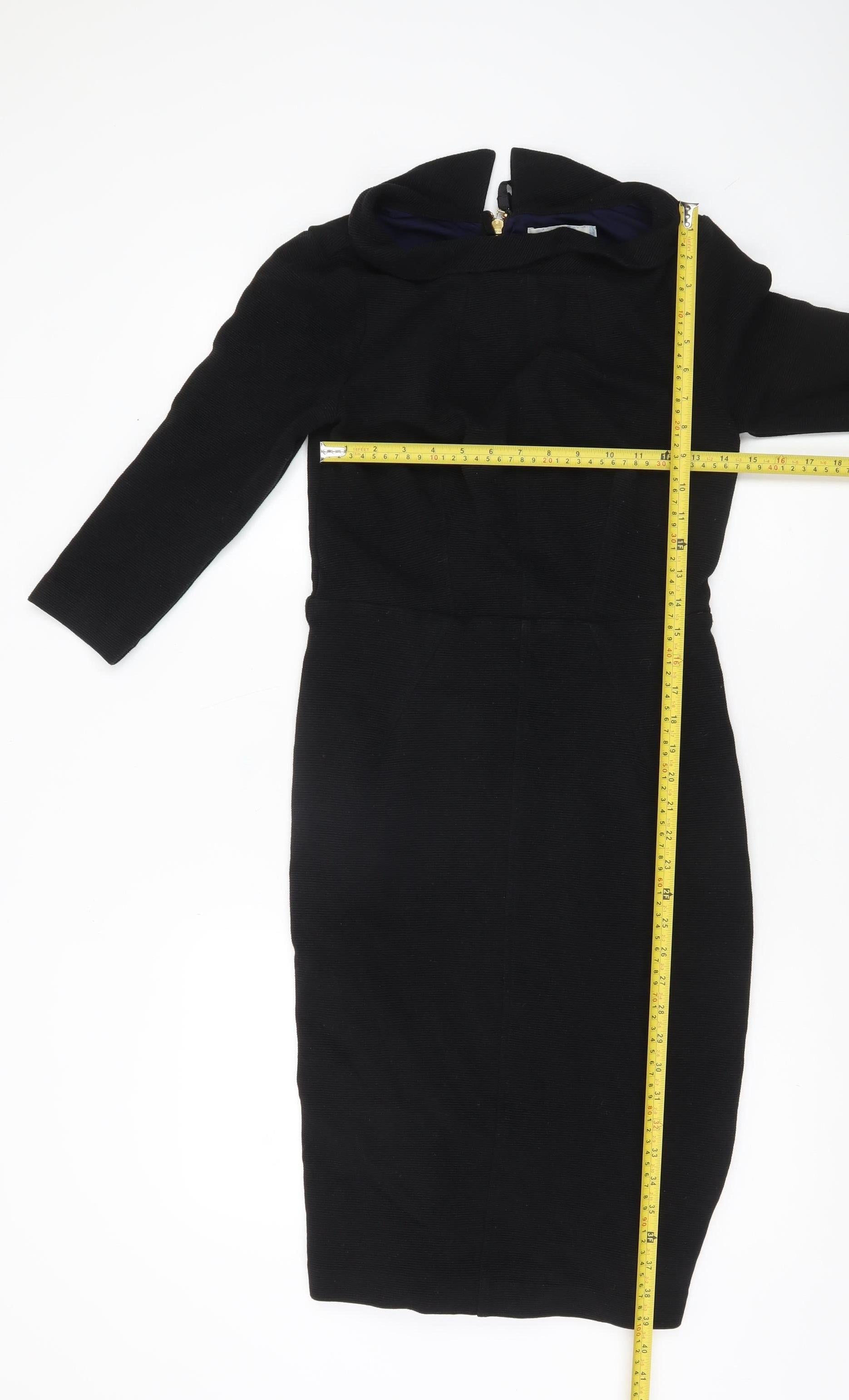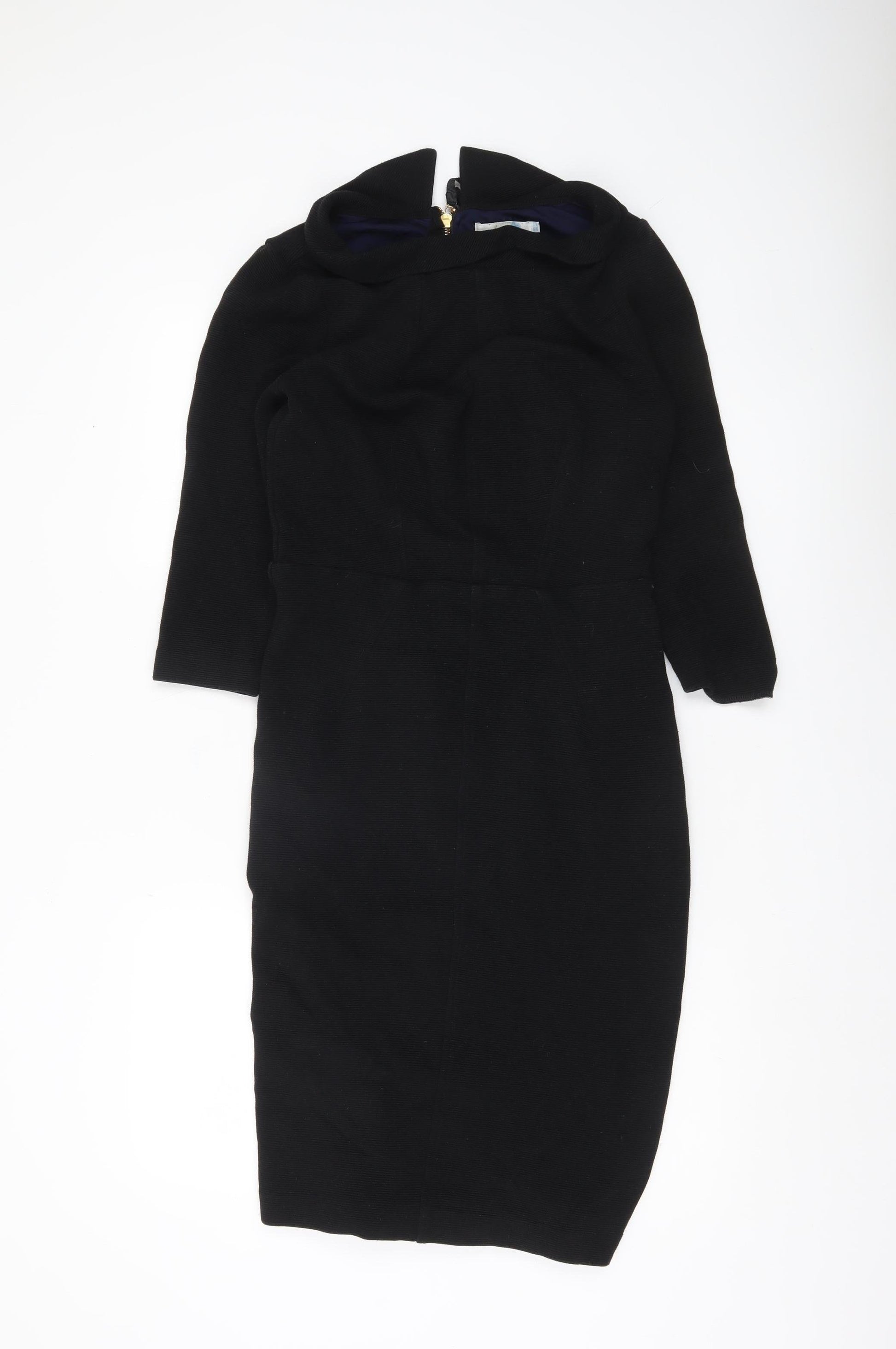 Boden Women Black Sheath Knee Length Dress Size 10 3/4 Sleeve Lined