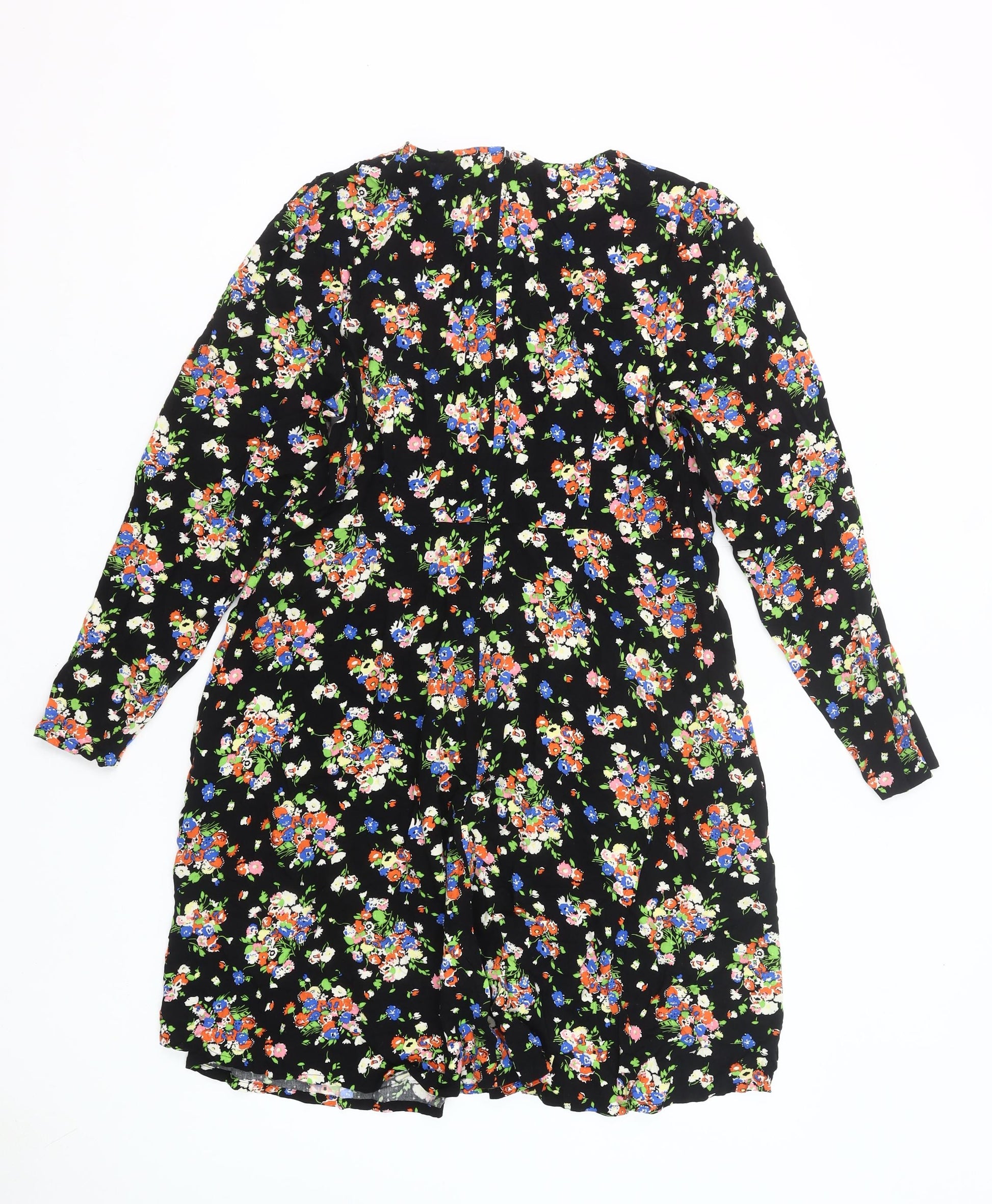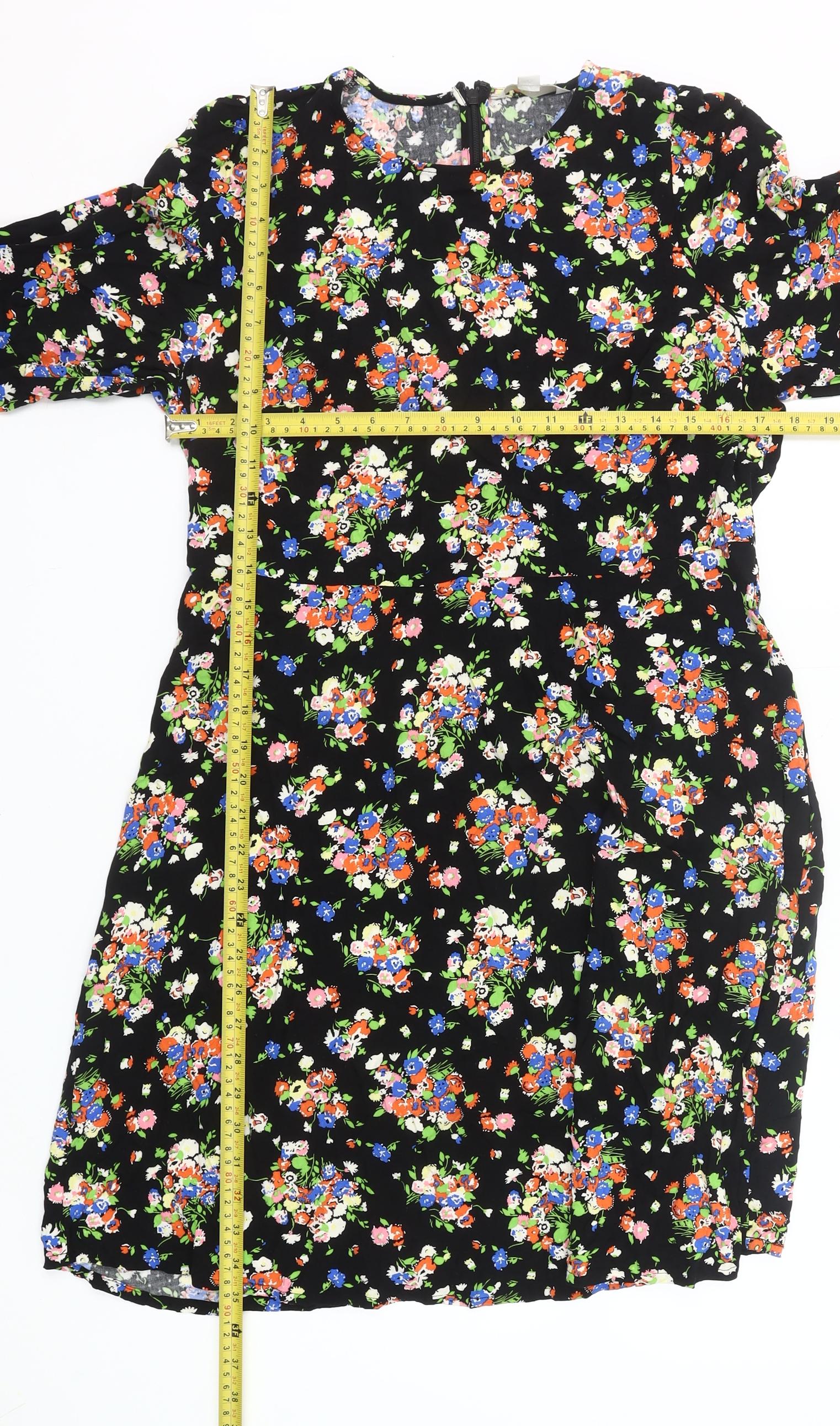 Boden Women’s Black Floral Shift Dress Size 16 Long Sleeve Knee Length