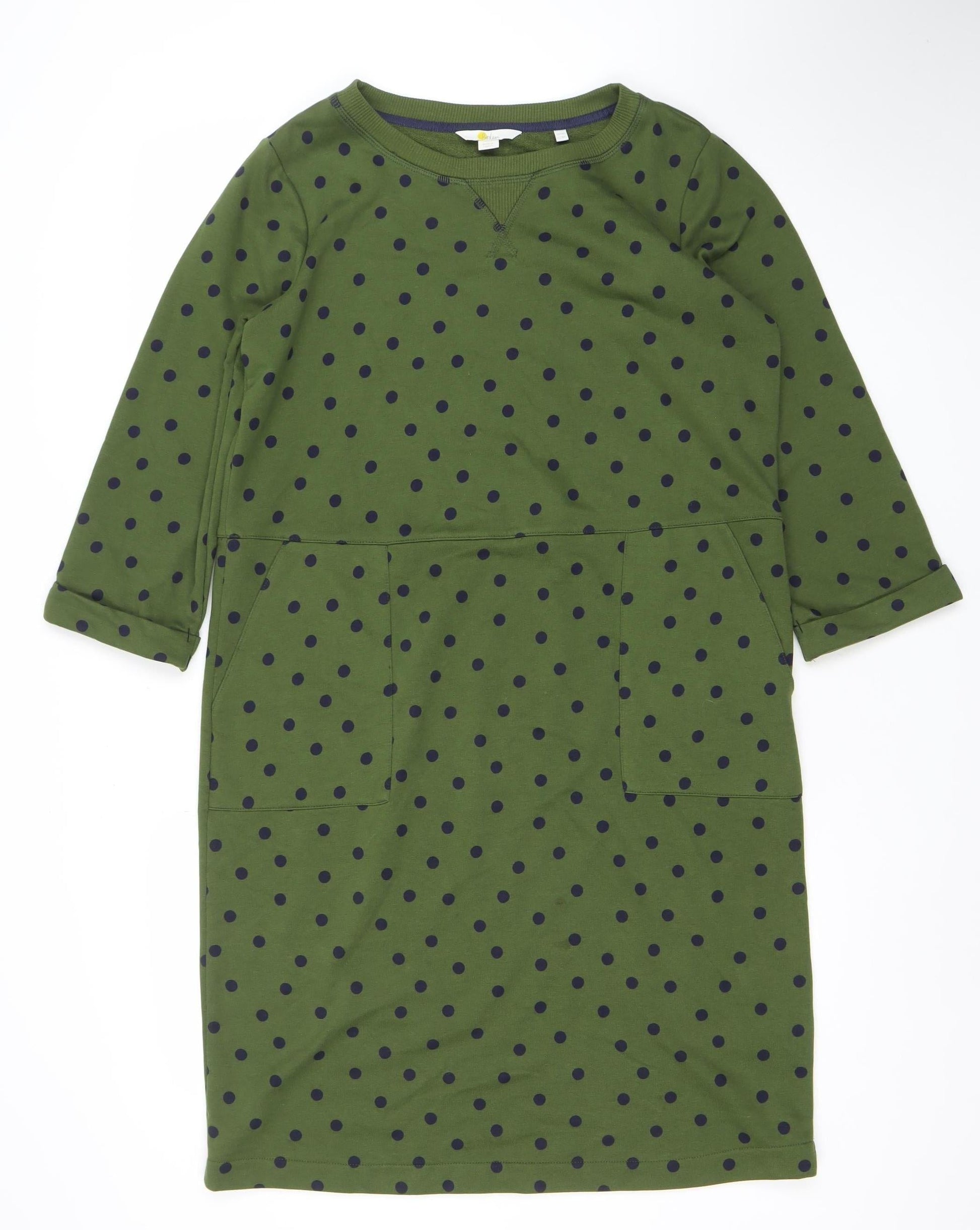 Boden Women’s Green Polka Dot Shift Dress UK14 3/4 Sleeve Jersey Cotton