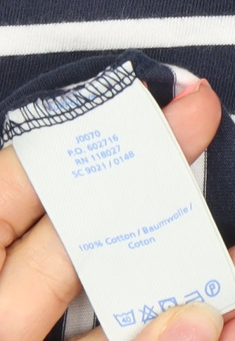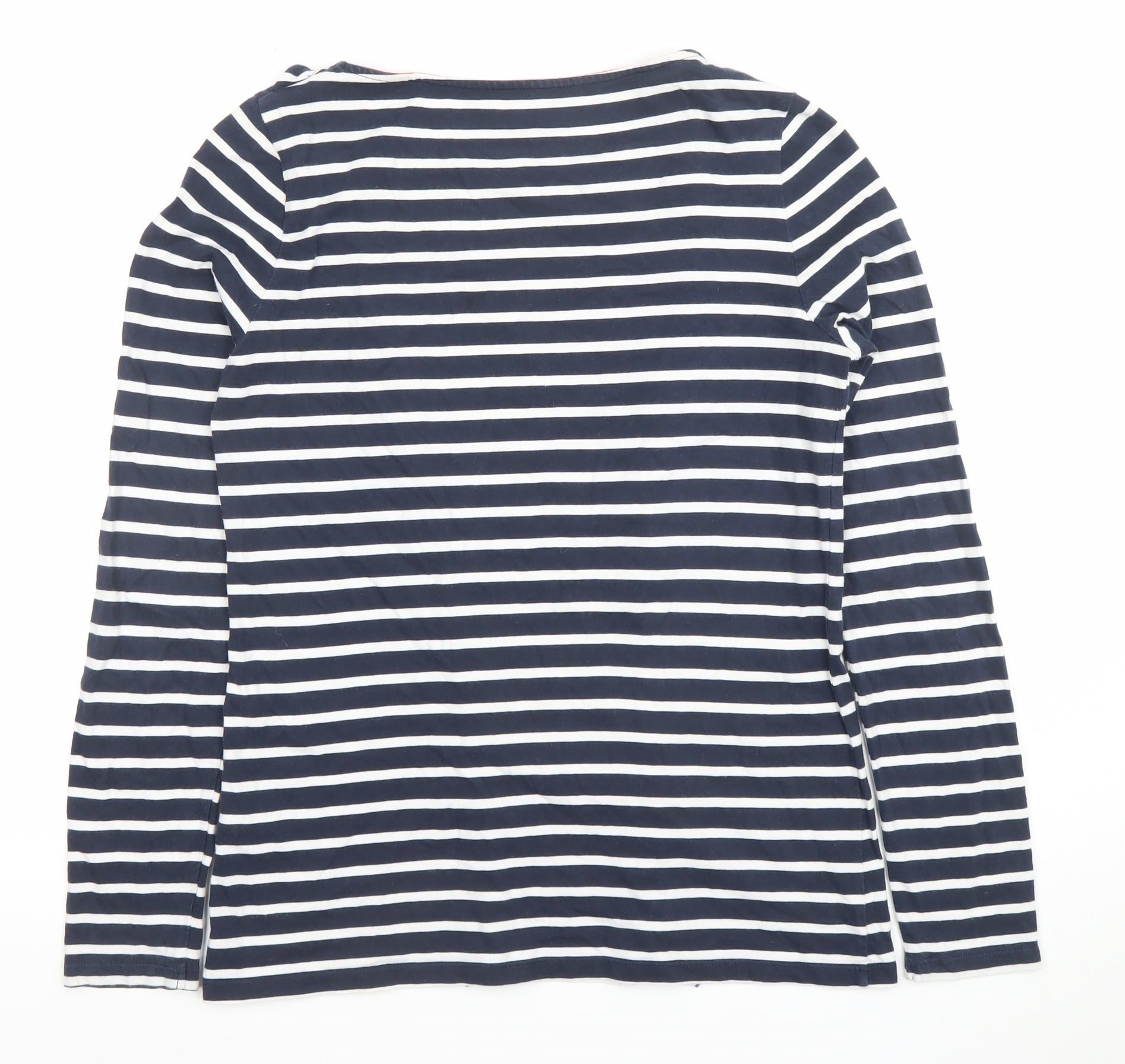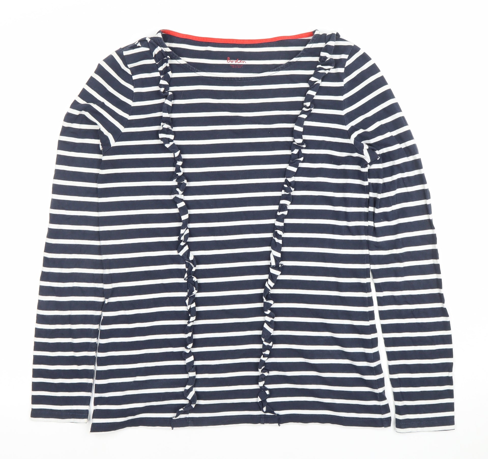 Boden Women’s Navy White Striped Ruffle Cotton Long Sleeve Top UK 10