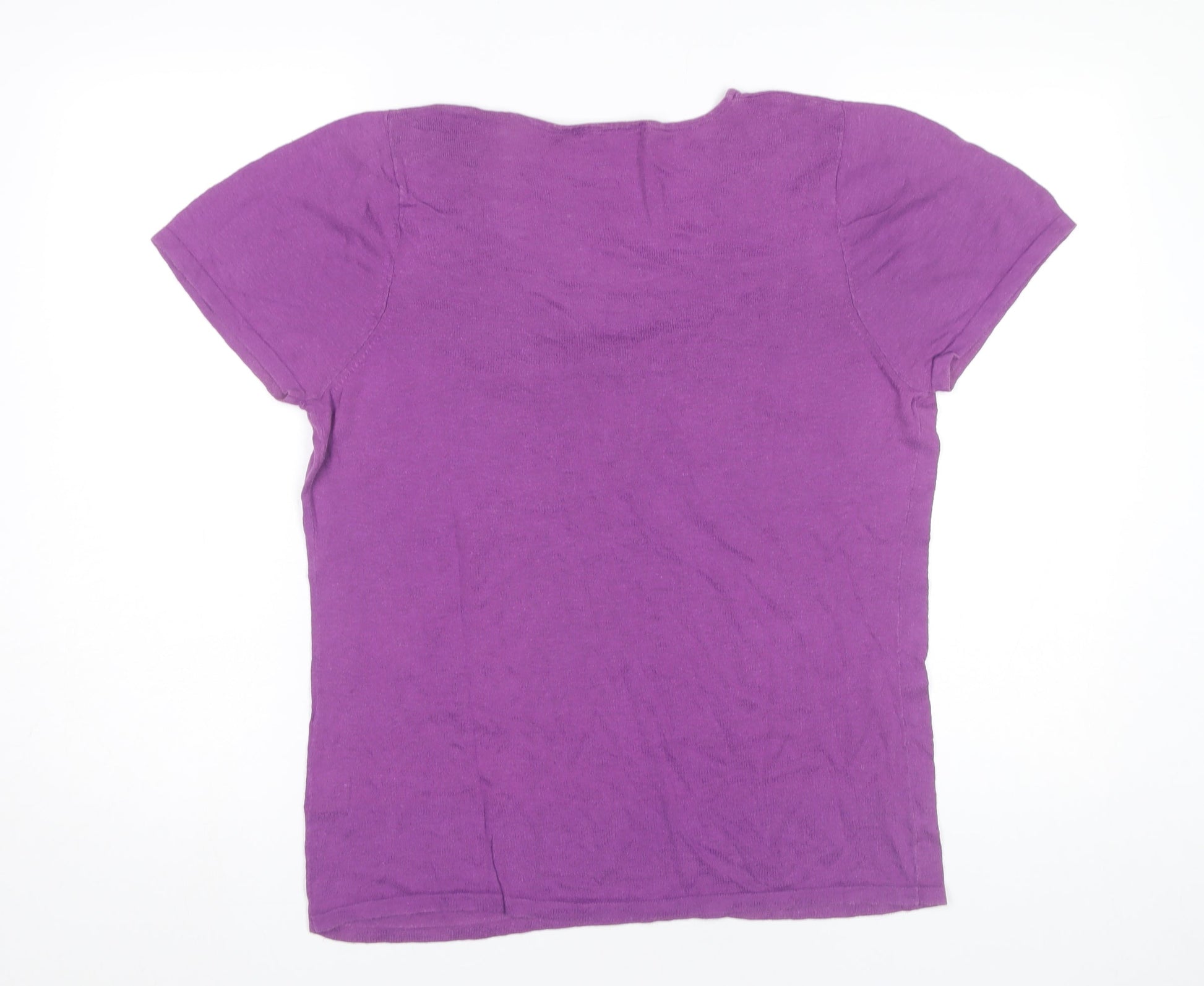 Boden Women’s Purple Linen Cotton V-Neck T-Shirt Size 16