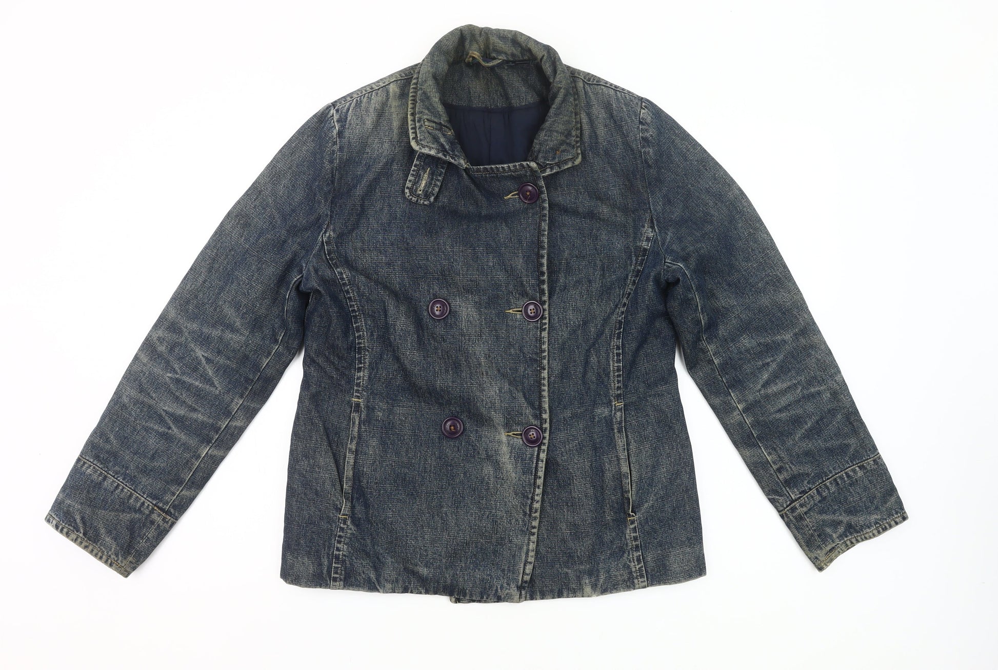 Boden Womens Blue Denim Cotton Pea Coat Jacket Size 12