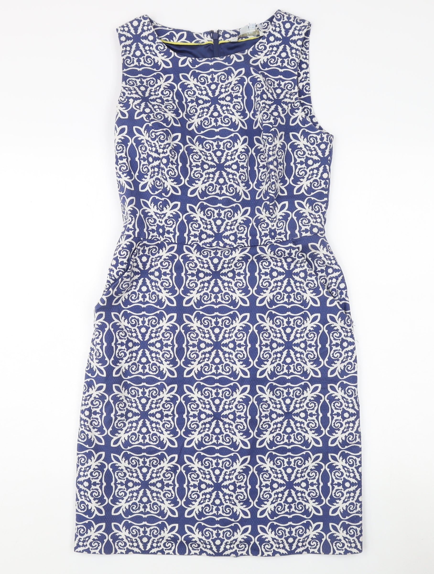 Boden Women's Blue Geometric Cotton Dress Size 10