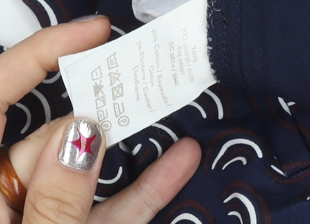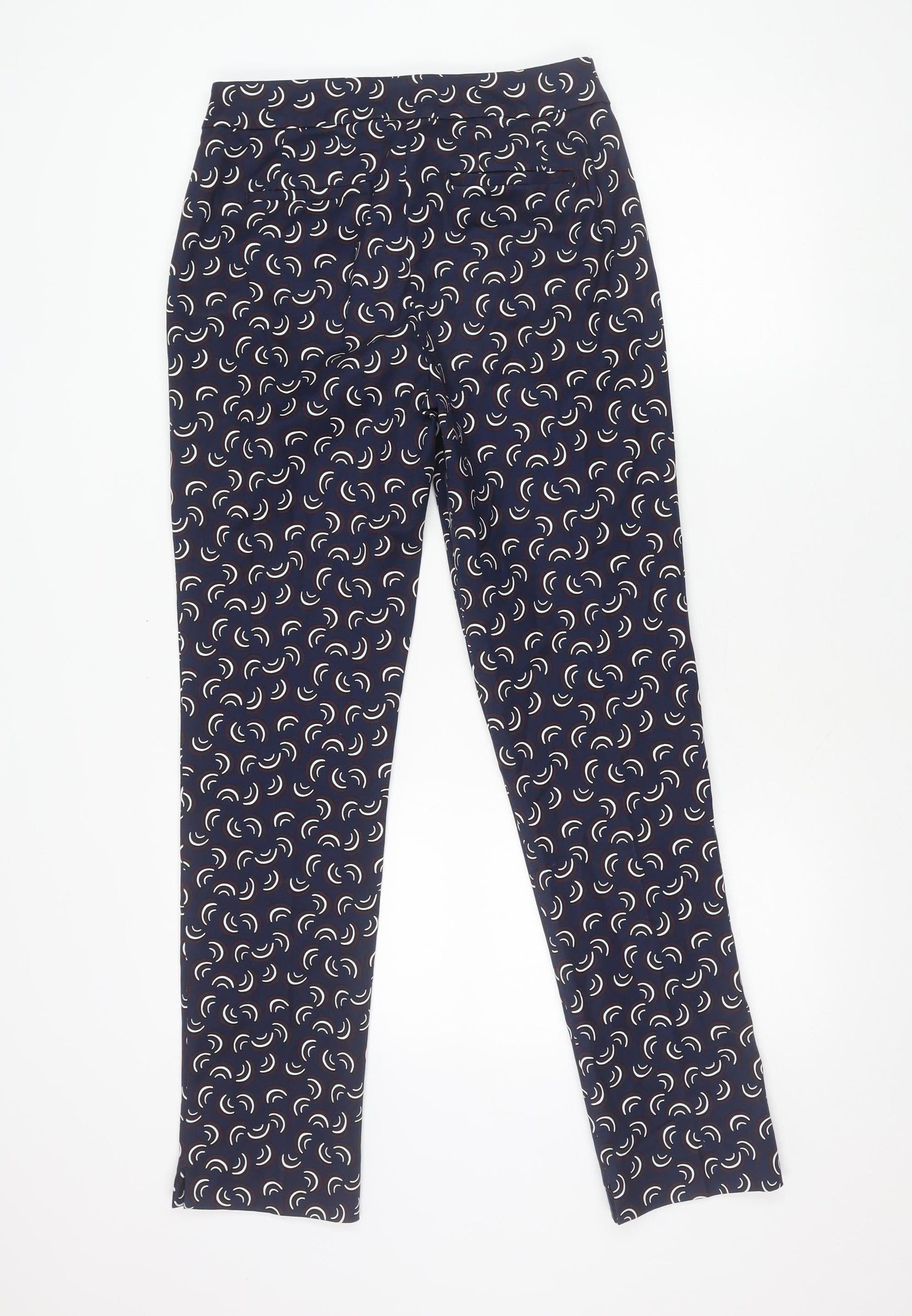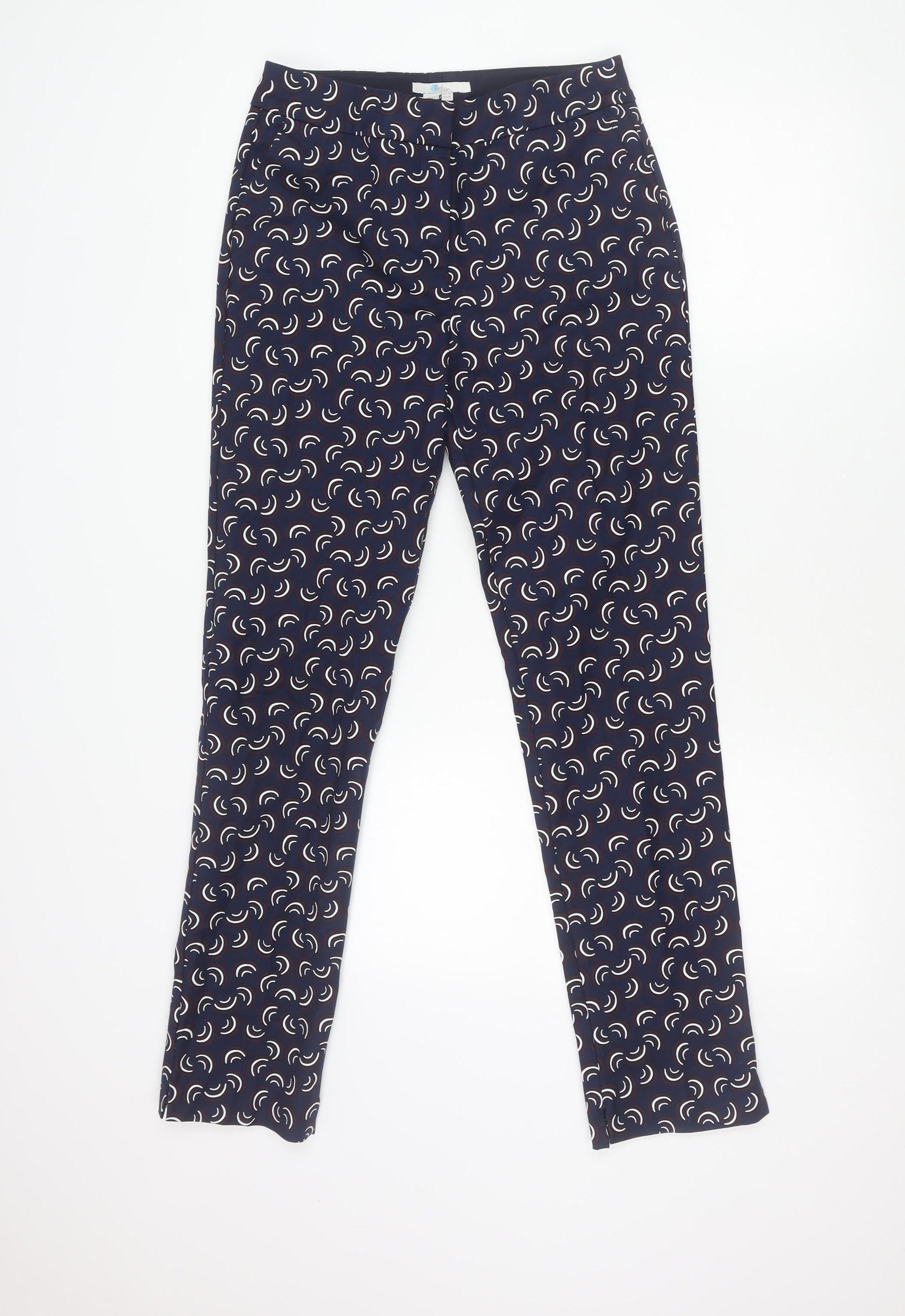Boden Women's Blue Geometric Slim Trousers Size 10 Cotton Stretch