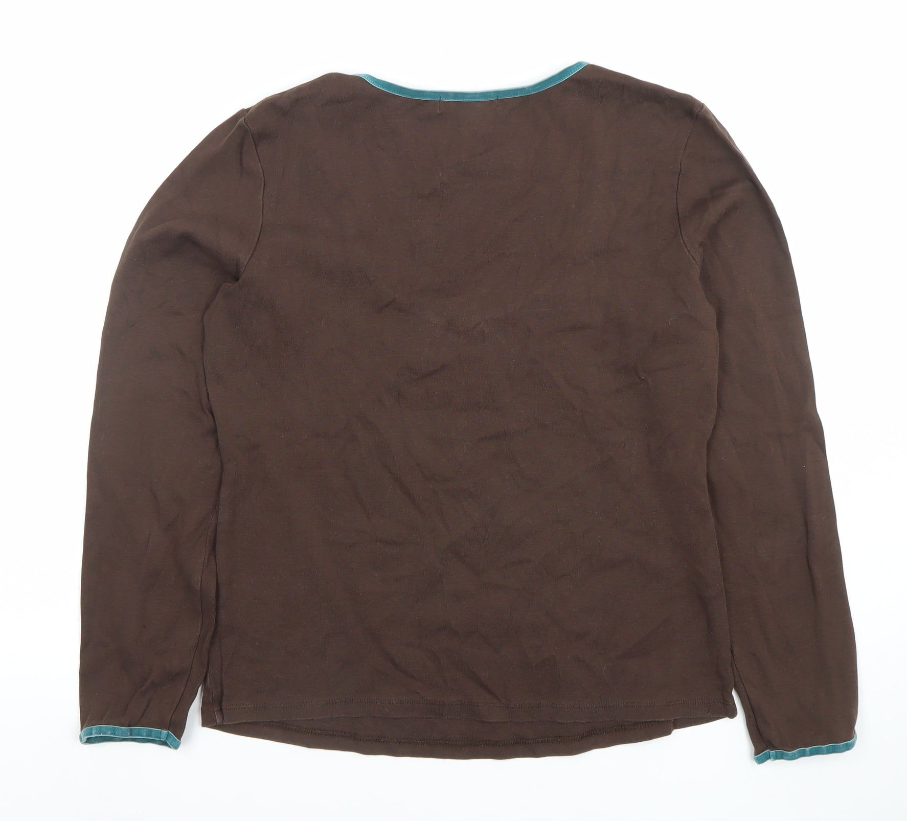 Boden Women's Brown Long Sleeve Scoop Neck Cotton Stretch Top M