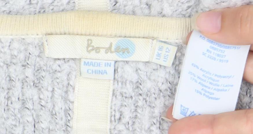 Boden Women's Grey Wool Alpaca Long Sleeve Cardigan Size 16
