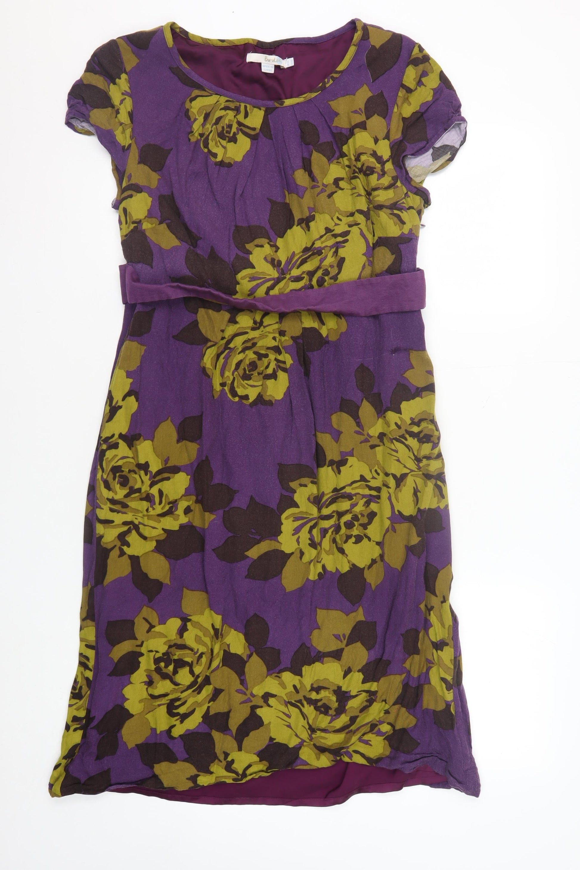 Boden Women's Purple Floral Belted Dress US10