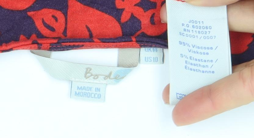 Boden Women's Red Floral Wrap Jersey Blouse Size 10 Long Sleeve