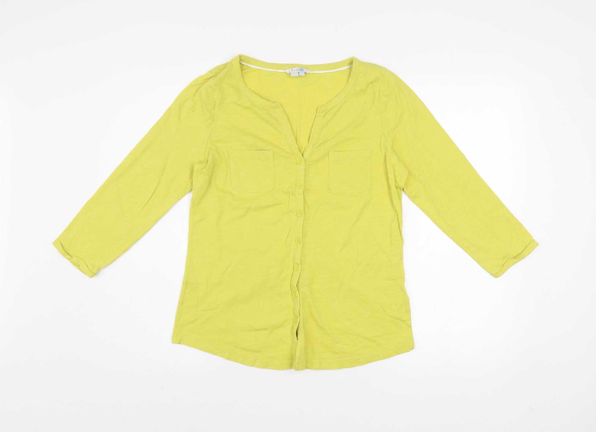 Boden Womens Yellow 3/4 Sleeve Button-Up Cotton Top Size 10