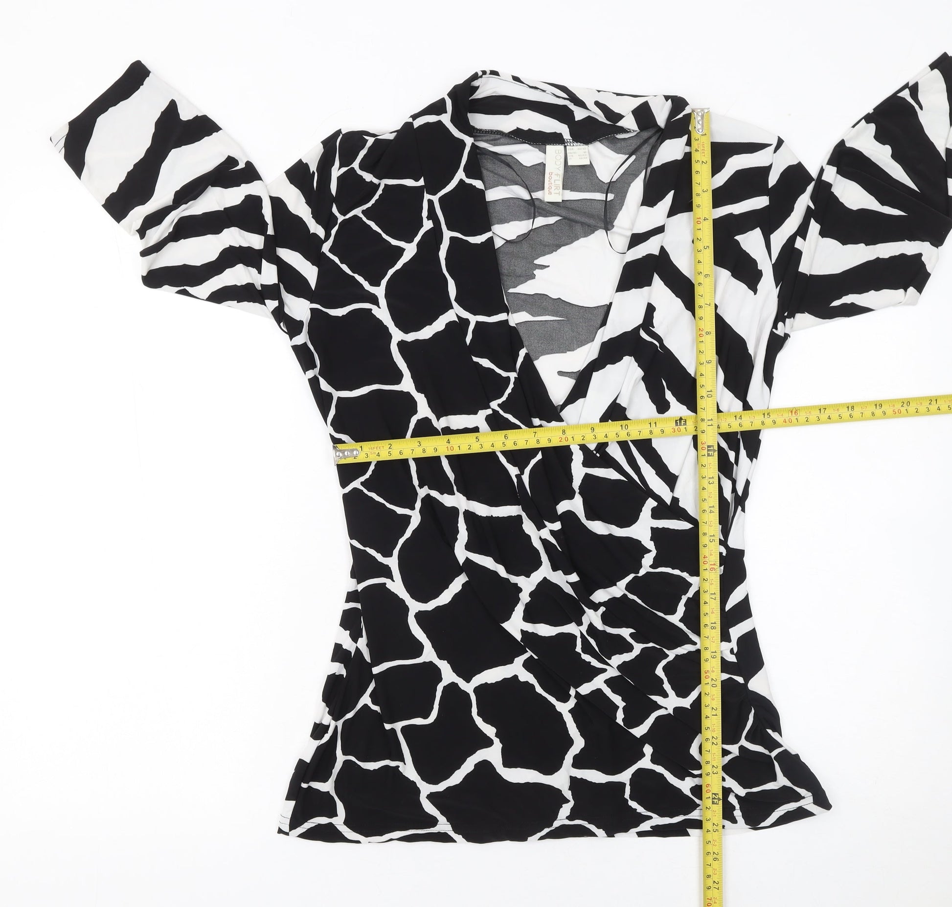 Bodyflirt Boutique Women's Black Animal Print Wrap Blouse M