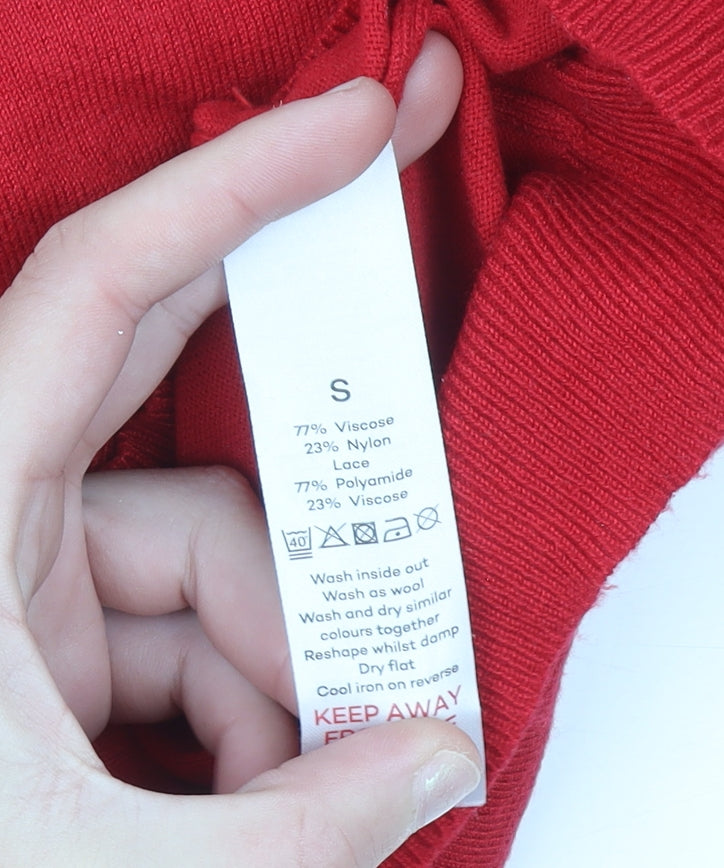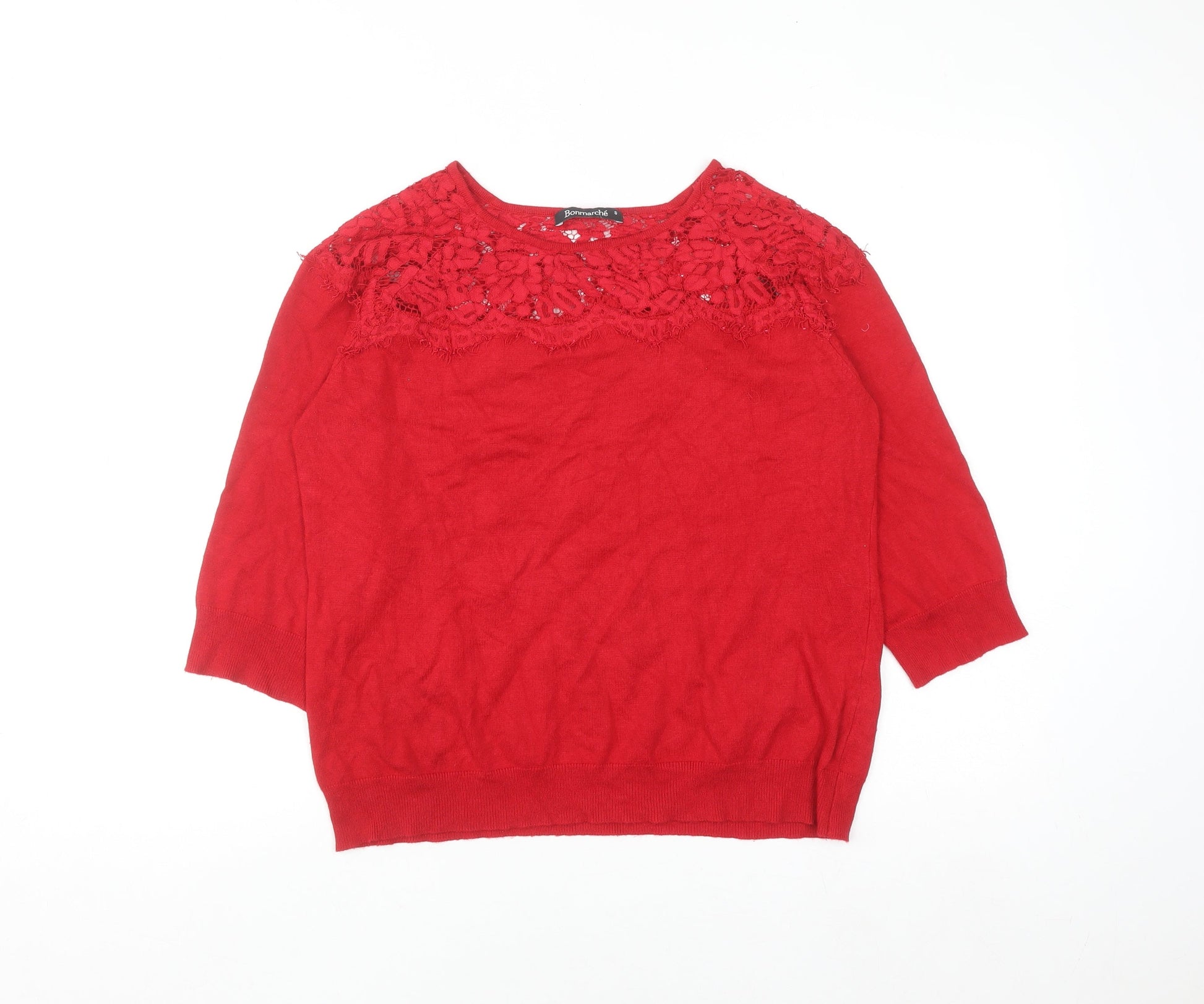 Bonmarché Women’s Red Lace Knit 3/4 Sleeve Blouse Size S