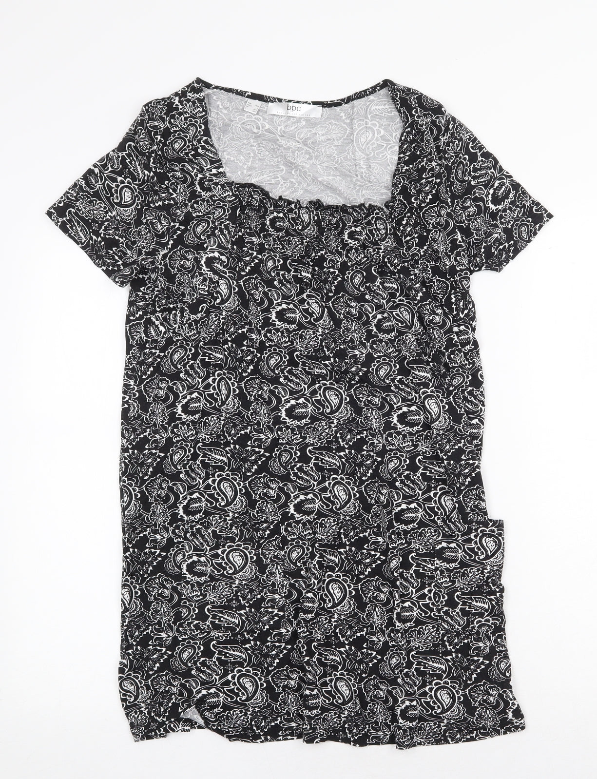 bonprix Womens Black Paisley Viscose Shift Size S Square Neck Pullover