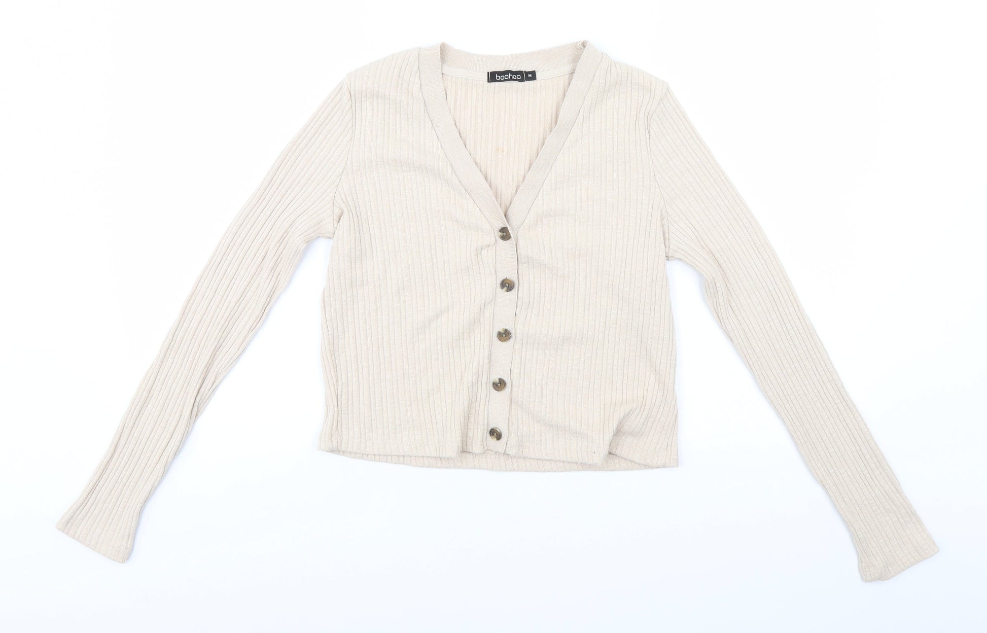 Boohoo Womens Beige V-Neck Striped Polyester Cardigan Jumper Size M