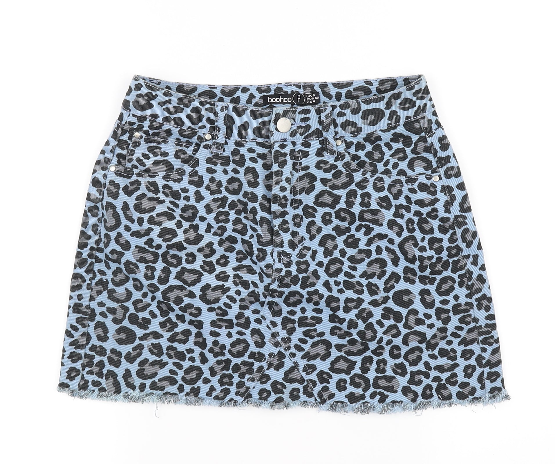 Boohoo Womens Blue Animal Print Mini Skirt Size 8