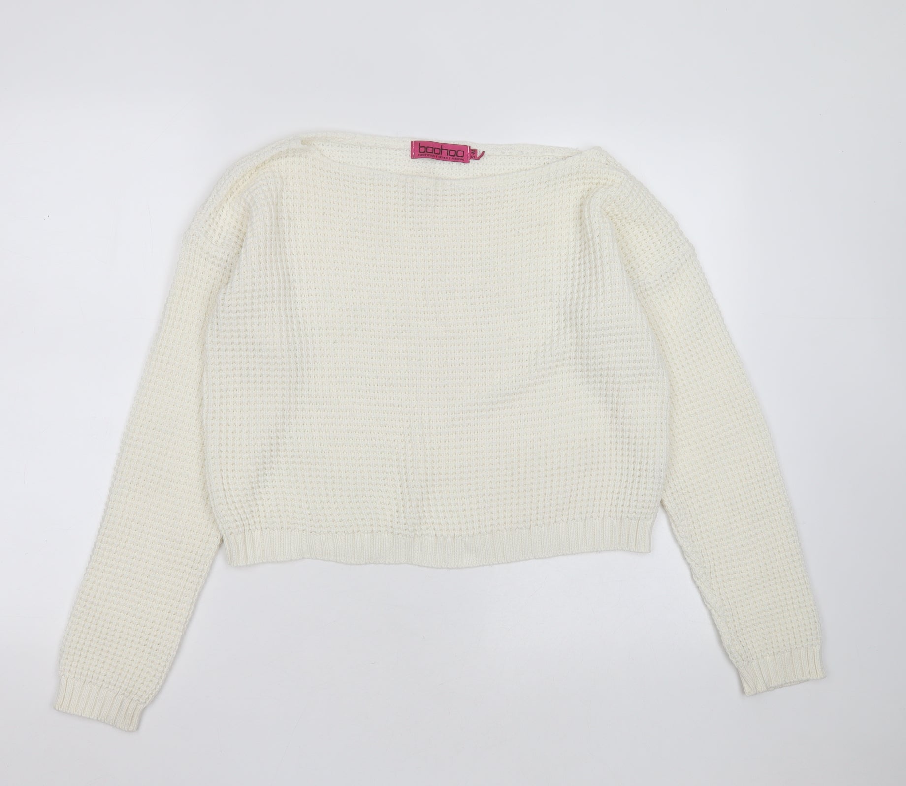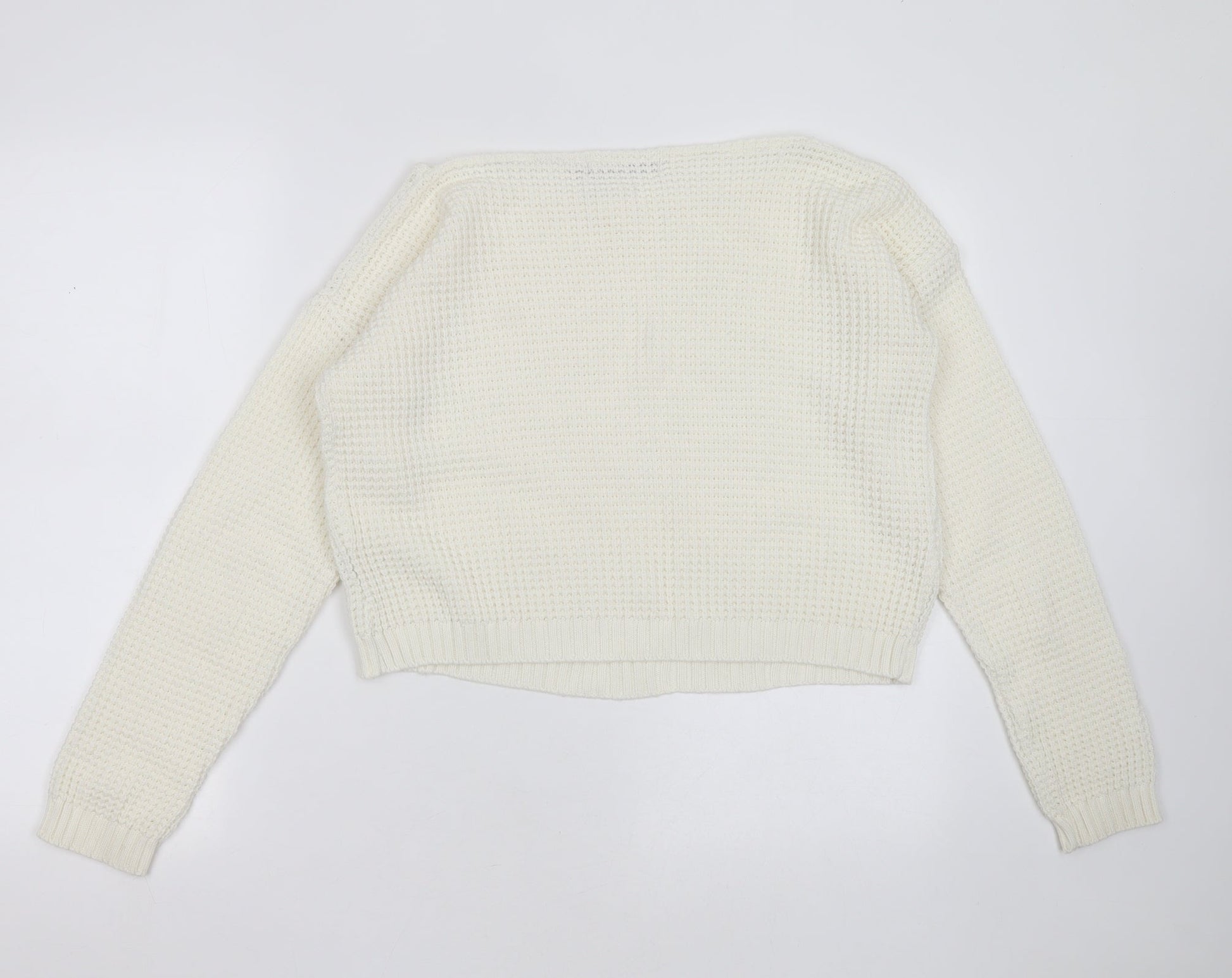 Boohoo Womens Ivory Round Neck Acrylic Pullover Jumper Size S