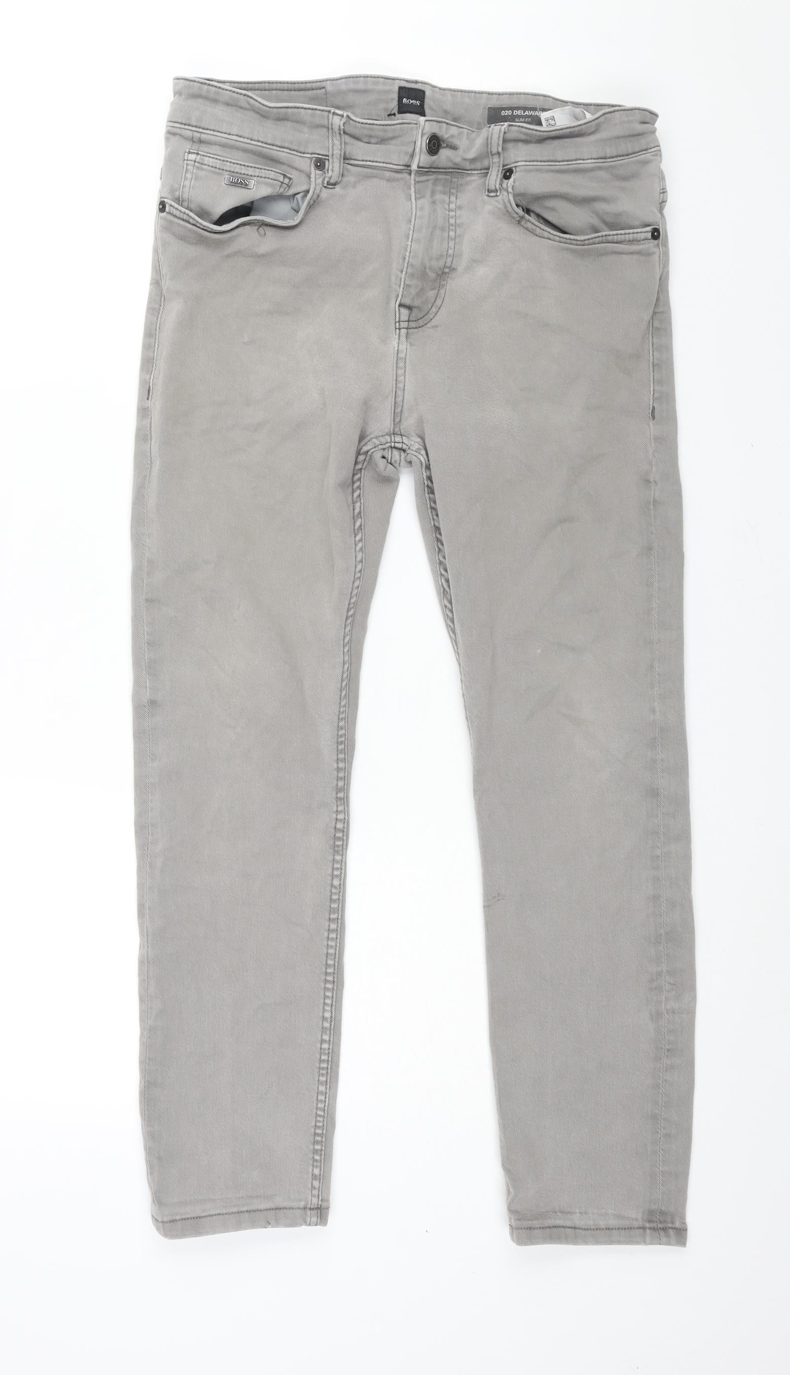 Boss Mens Grey Cotton Straight Jeans Size 32 in L30 in Regular Zip