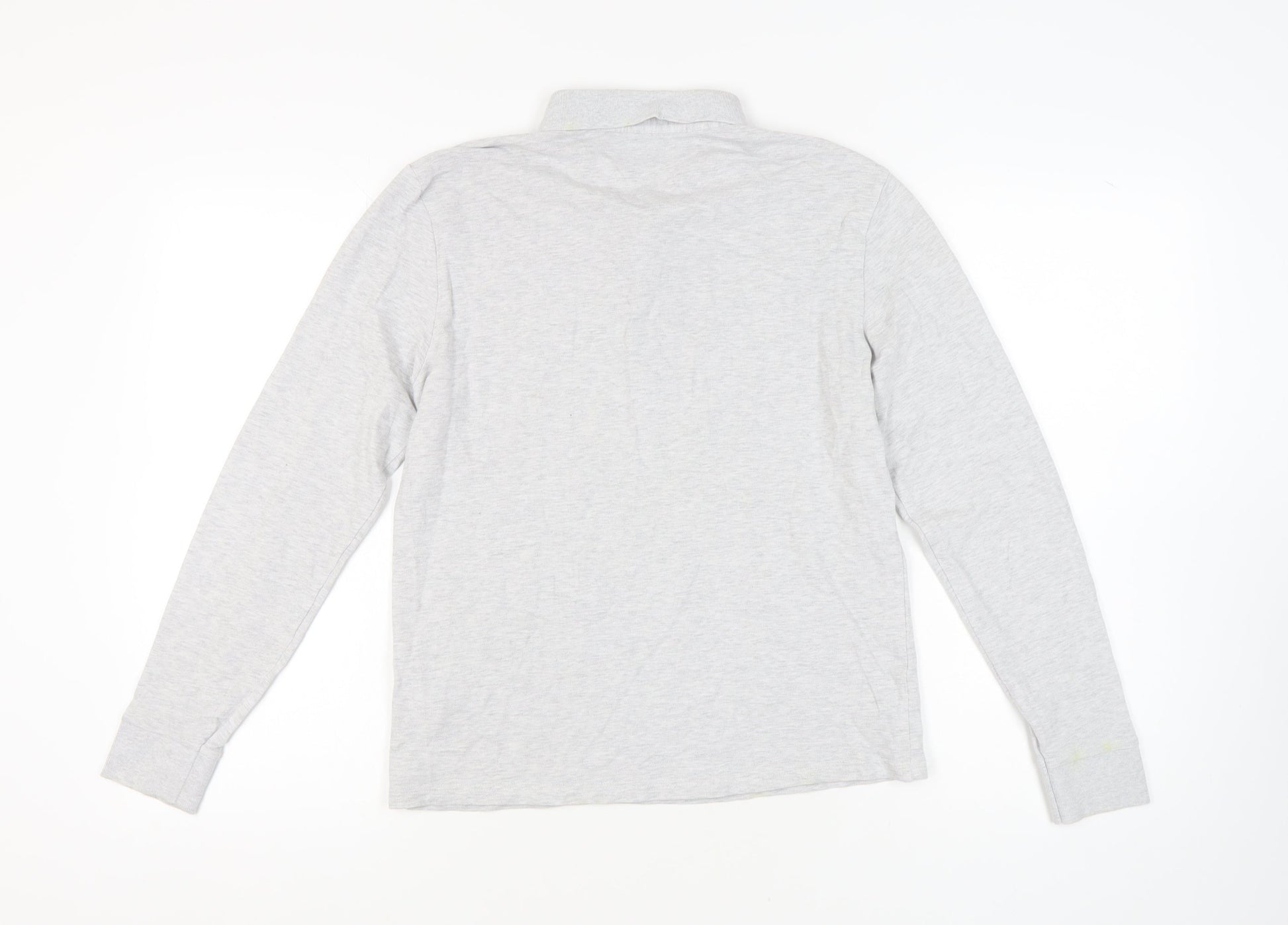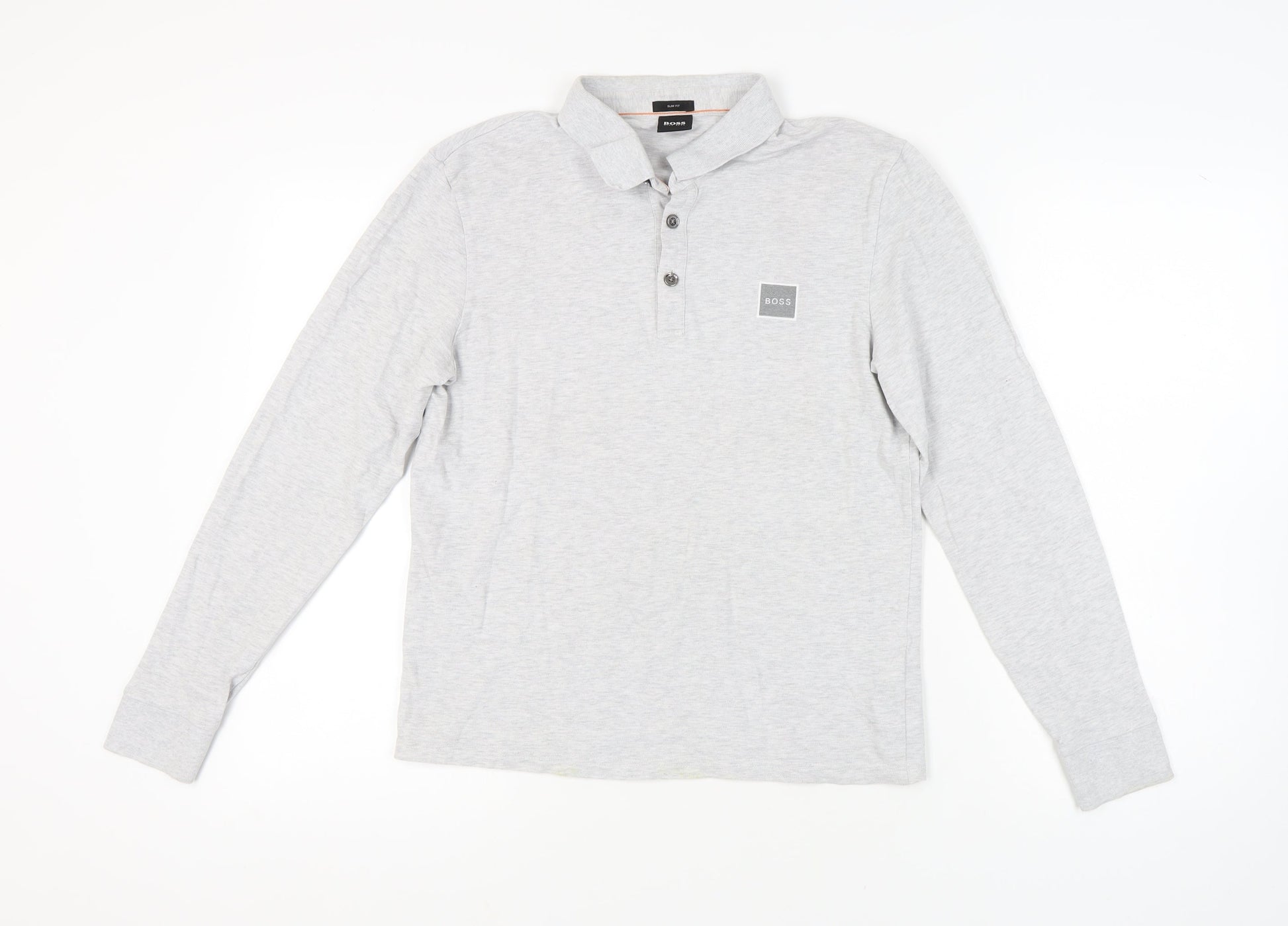 Boss Men's Grey Long Sleeve Slim Fit Polo, Size M