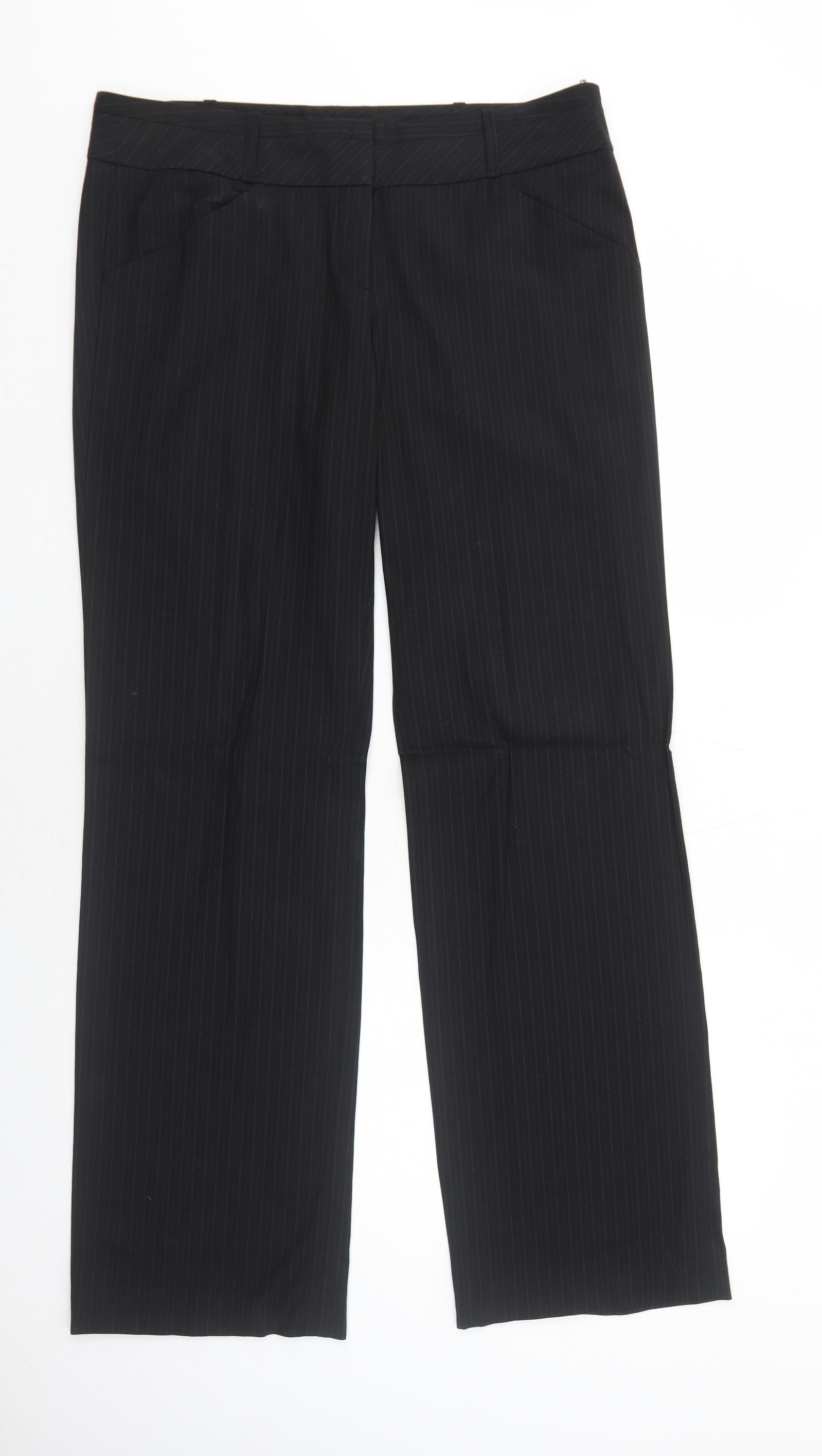 Boss Womens Black Striped Cotton Dress Pants Trousers Size 14 Regular Zip