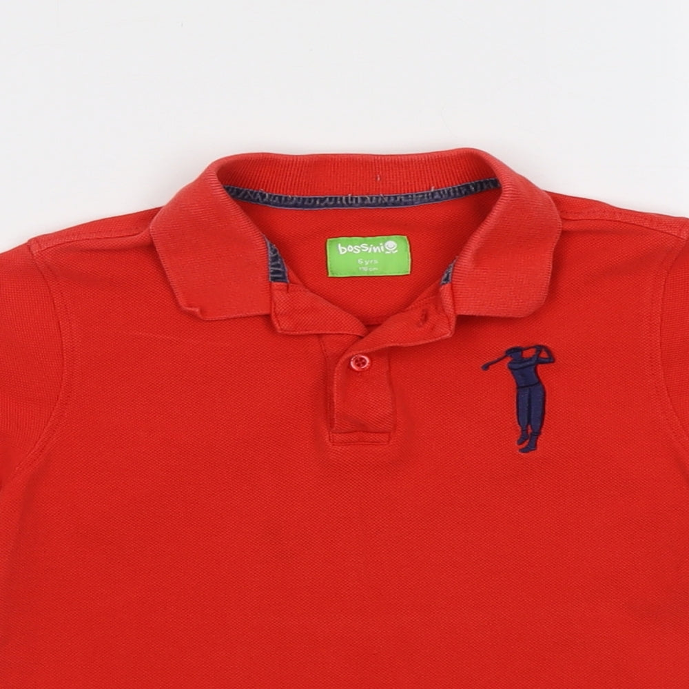 Bossini Boys Red Cotton Pullover Polo Size 6 Years Collared Button