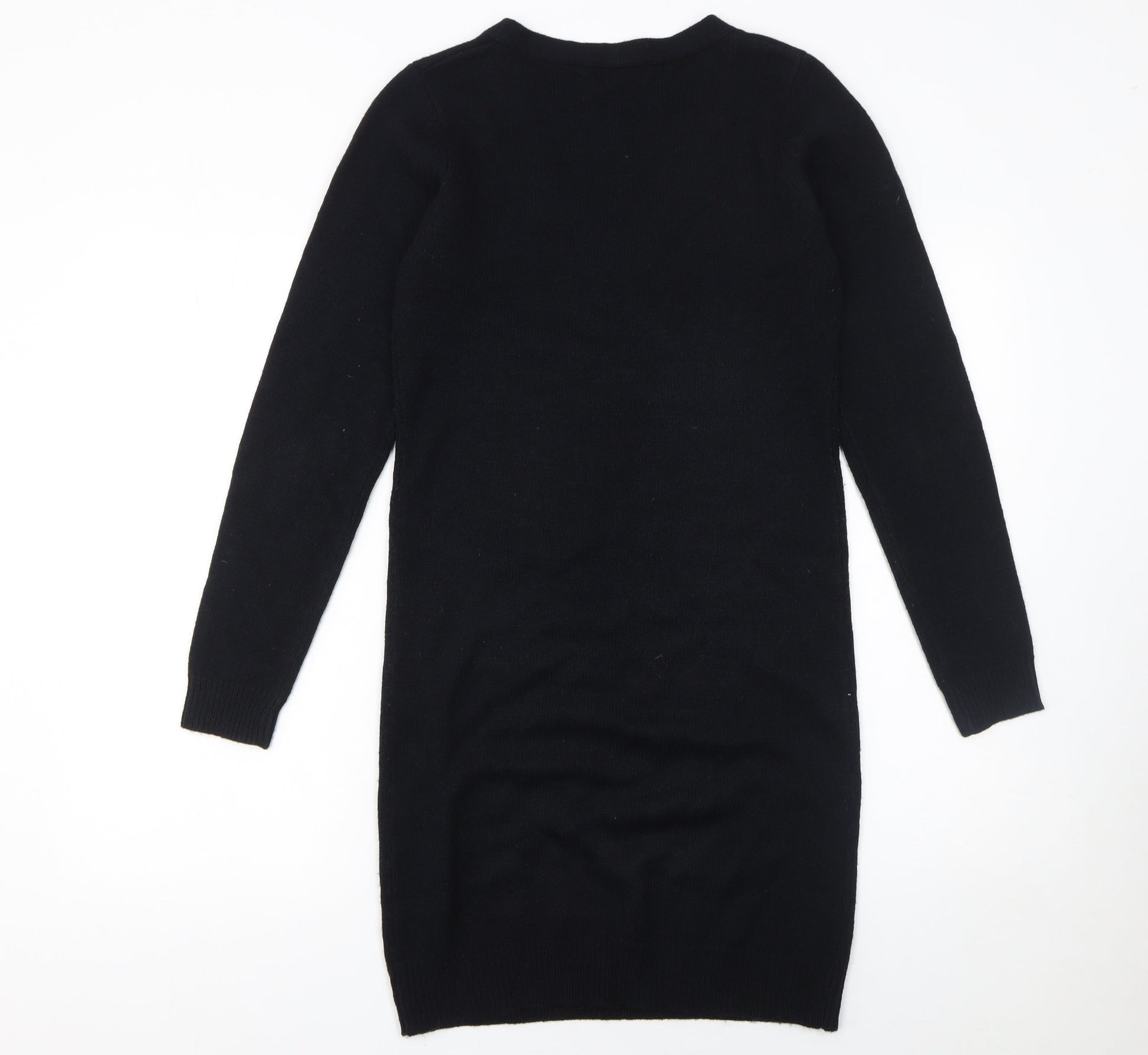 Brave Soul Women Black S Jumper Dress V-Neck Long Sleeve Knit