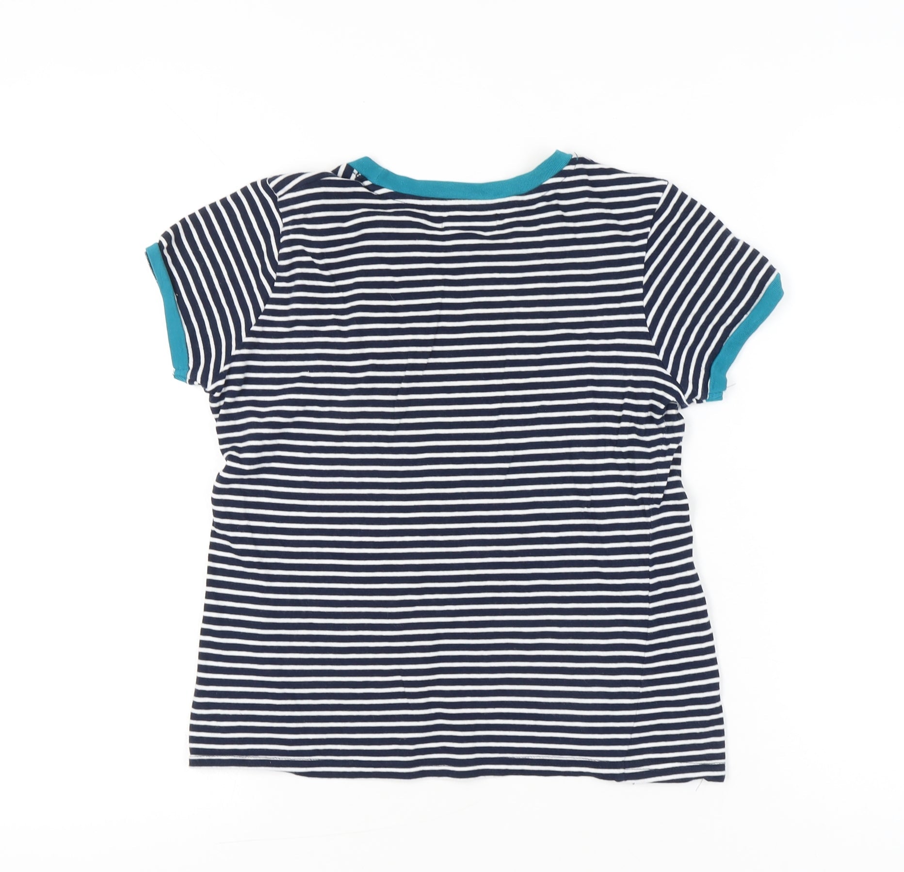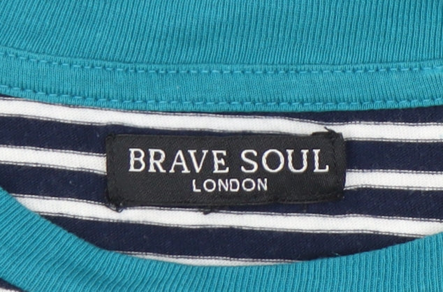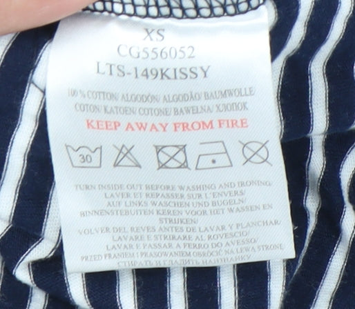Brave Soul Women’s XS Blue Striped Sequin Heart Cotton T-Shirt