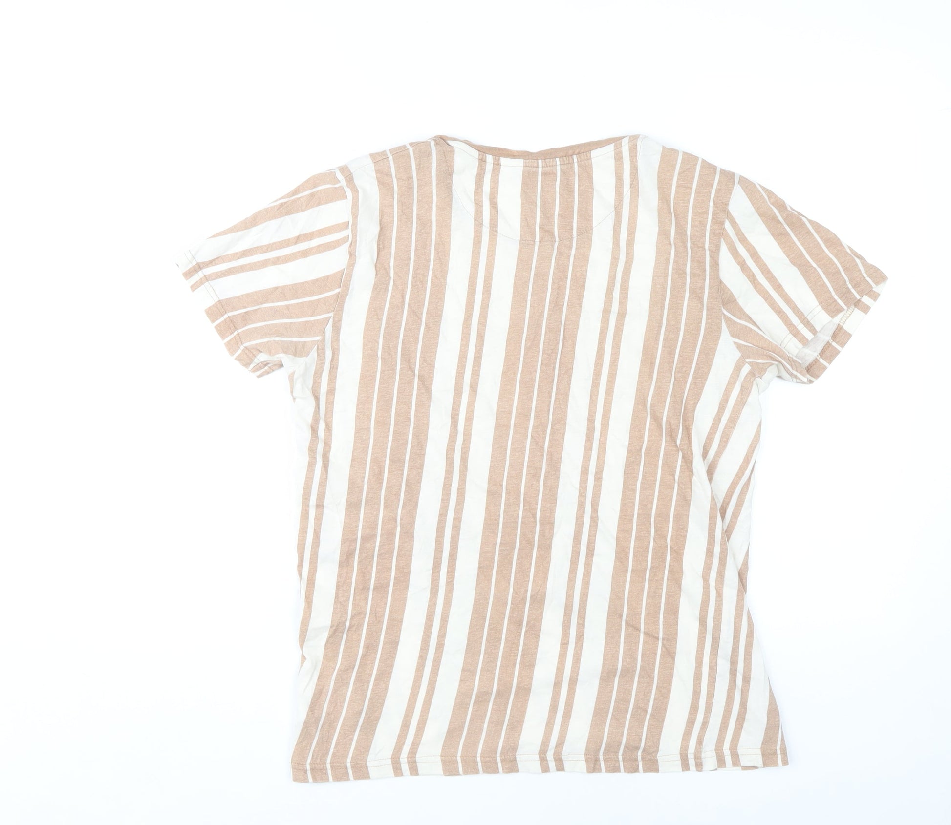 Brave Soul Women's Beige Striped T-Shirt, M, Crew Neck