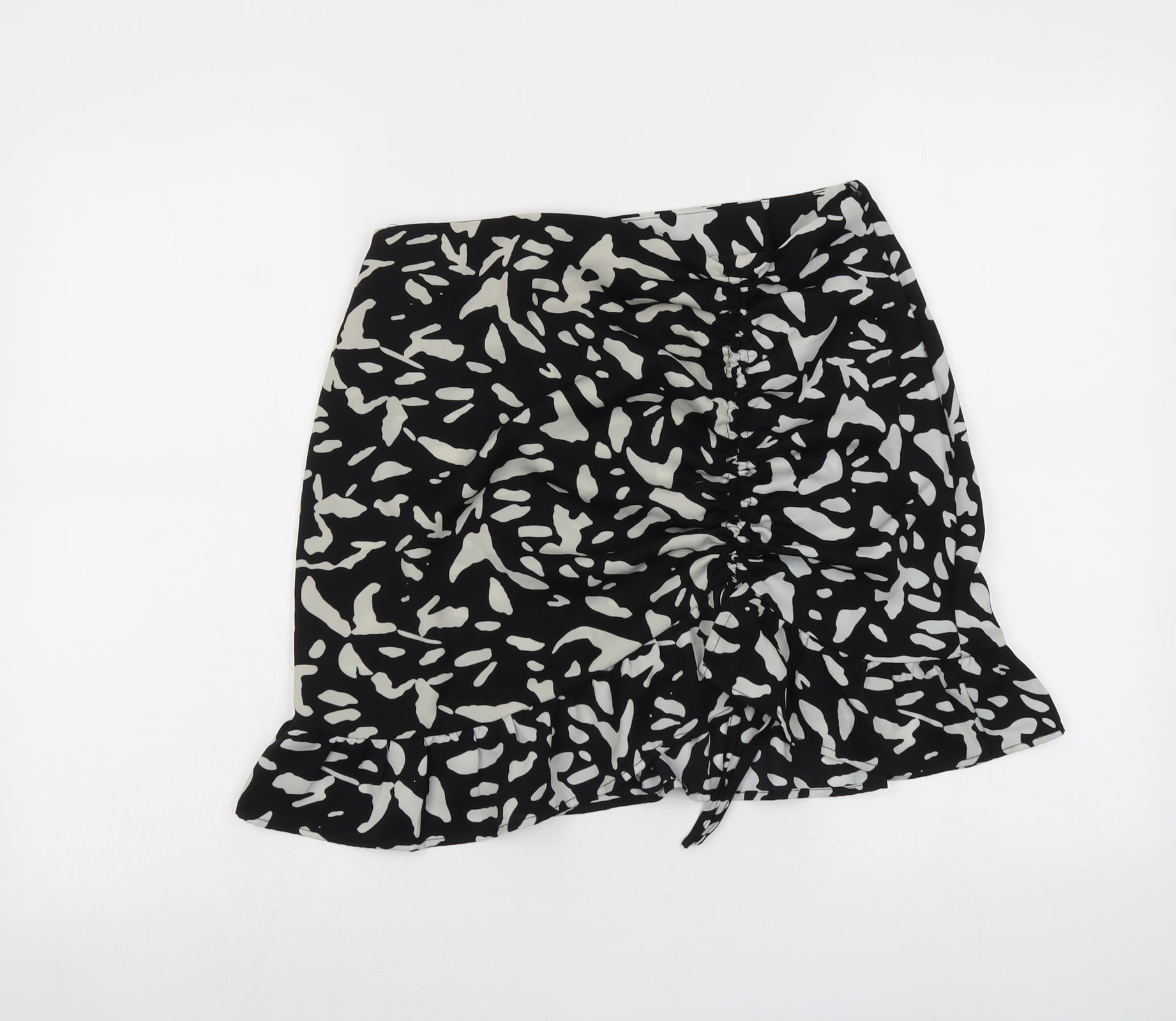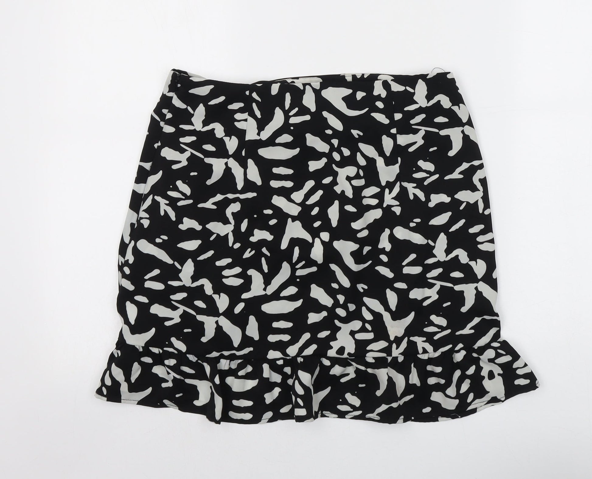 Brave Soul Womens Black Geometric Polyester Skater Skirt Size M Zip
