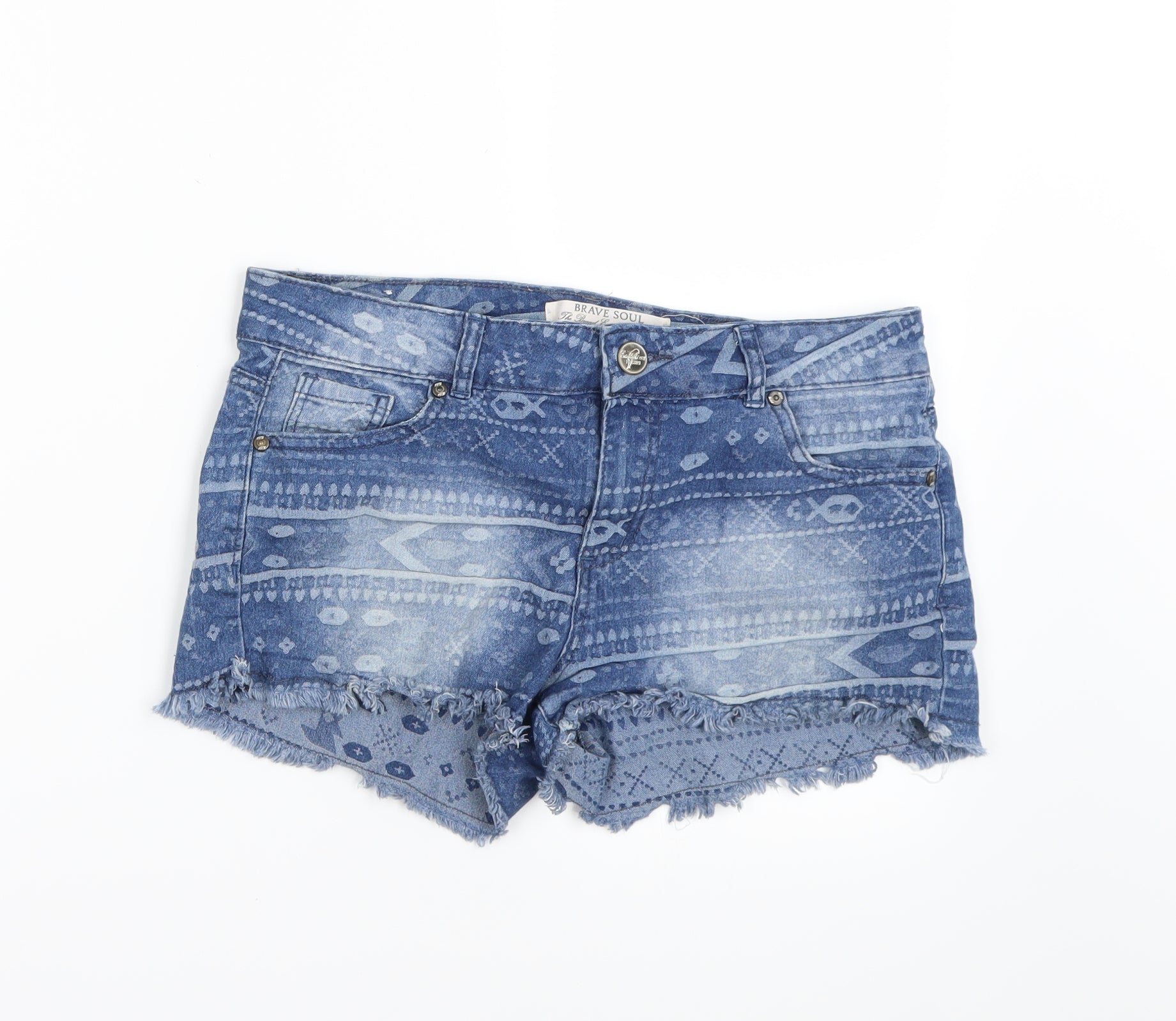 Brave Soul Womens Blue Geometric Cut-Off Shorts Size 10