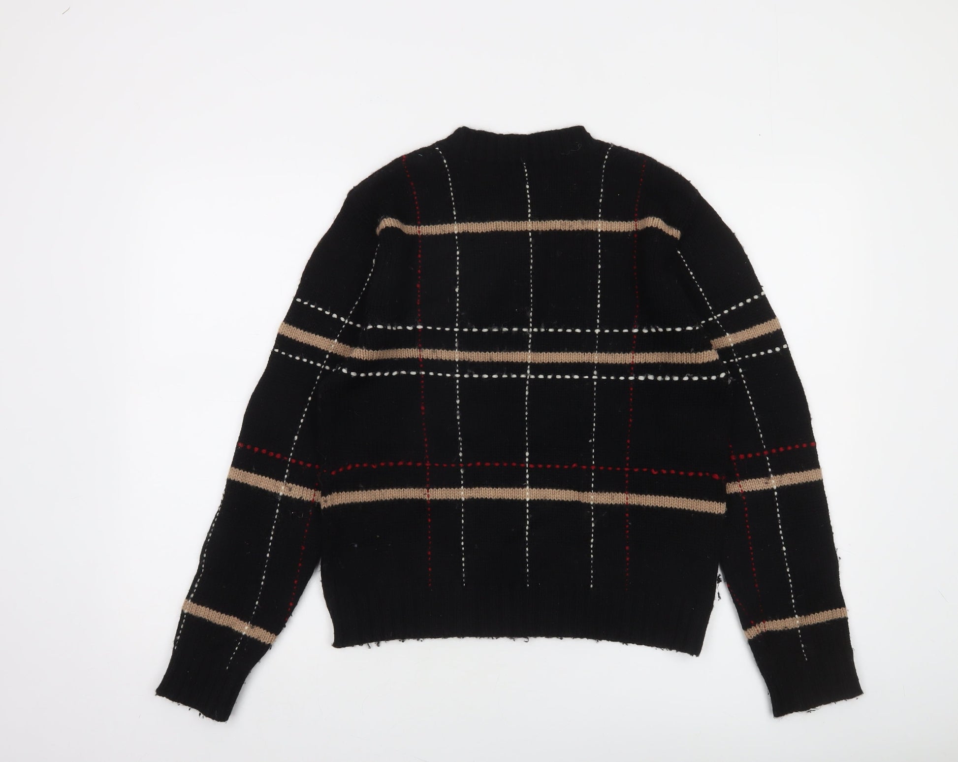 Burberry Women’s Black Check Wool Crew Neck Jumper Size 12
