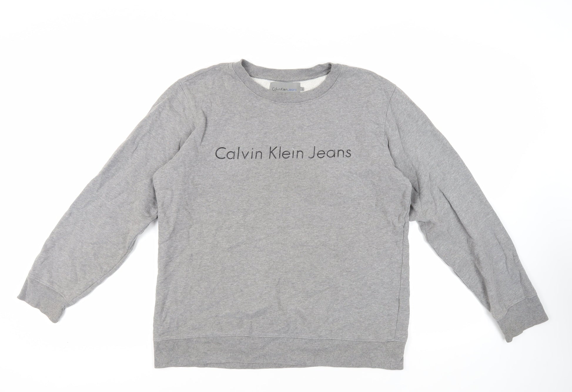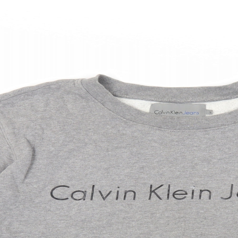 Calvin Klein Jeans Mens Grey Cotton Pullover Sweatshirt Size L - Logo